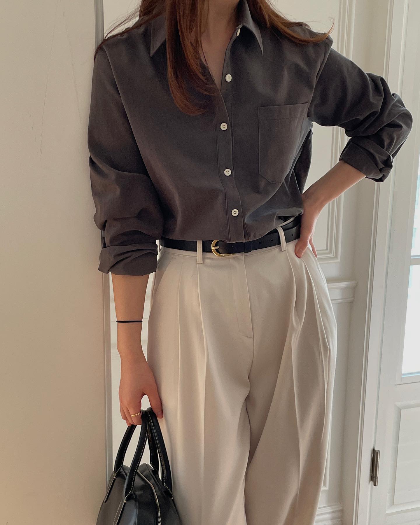 Áo sơ mi có độ chuẩn mốt vượt thời gian, đây cũng là item chủ chốt trong tủ đồ công sở. Áo sơ mi mang đến sự thanh lịch, trang nhã cho người diện. Các quý cô trên 40 tuổi có thể bắt gặp rất nhiều phiên bản áo sơ mi khi đi mua sắm và lựa chọn nâng tầm phong cách hiệu quả chính là áo sơ mi màu trung tính, dáng oversized.