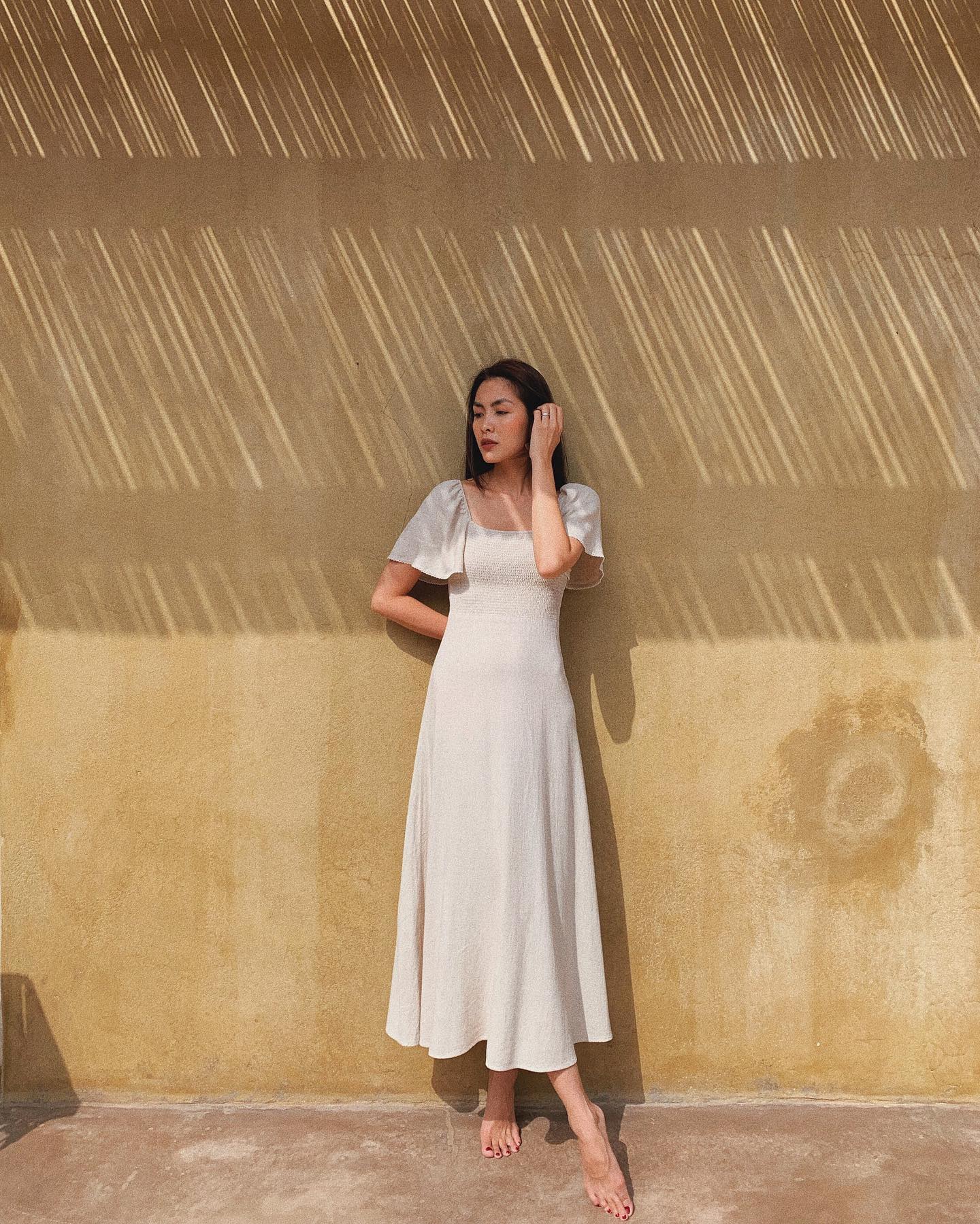 Các ý tưởng diện váy của Thùy Tiên phù hợp với những buổi dạo phố cuối tuần hay chuyến du lịch mùa hè. Để hoàn thiện các set váy mang tông màu trung tính làm chủ đạo, Thùy Tiên gợi ý những mẫu giày sang trọng như sneaker trắng, giày cao gót mũi nhọn, giày loafer…