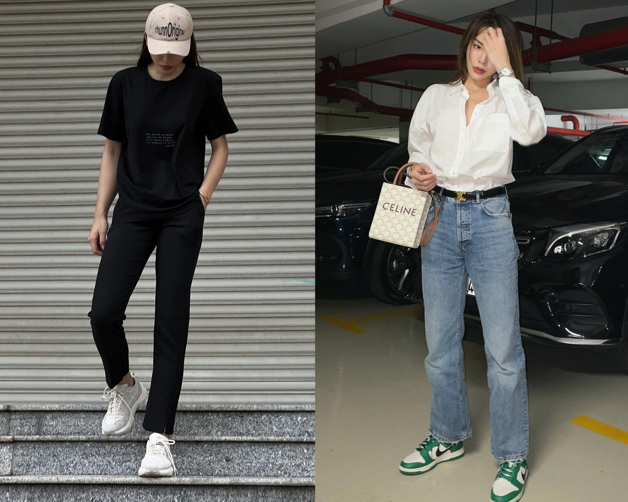 Phương Ly có nhiều "bí kíp" tôn dáng khi đi giày sneaker. Cụ thể, cô thường sơ vin, diện quần short hoặc quần ống đứng dài trên mắt cá chân. Các tuyệt chiêu này "hack" chiều cao tốt, đồng thời nâng điểm sành điệu cho phong cách.
