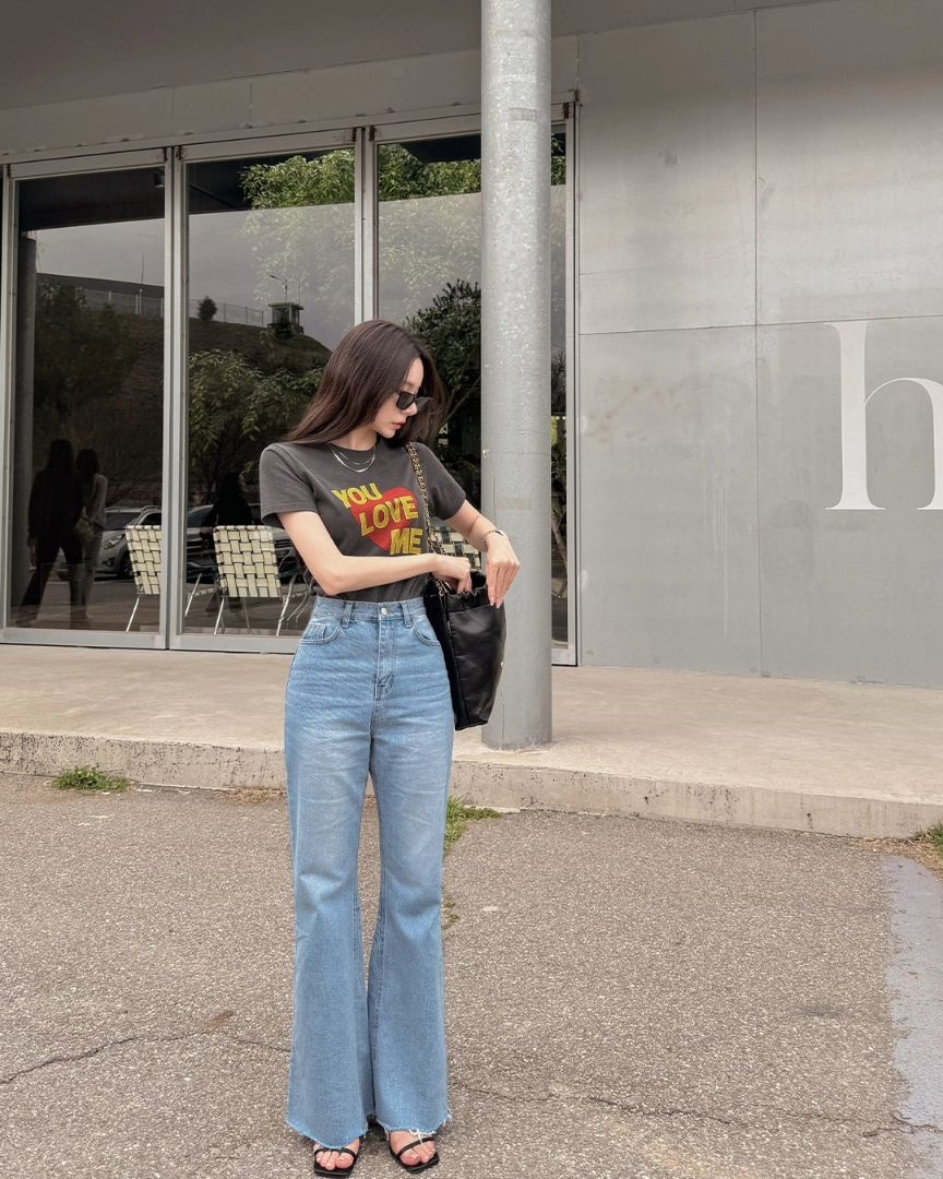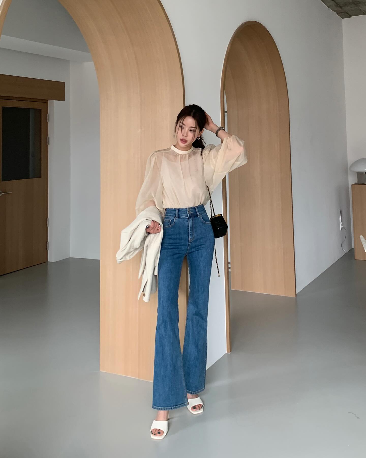 Quần jeans ống vẩy giúp bộ trang phục trở nên nổi bật hơn nhờ nét cổ điển, sang chảnh. Ngoài ra, quần jeans ống vẩy còn tạo hiệu ứng chân thon dài. Để phát huy tối ưu hiệu quả tôn dáng của quần jeans ống vẩy, các nàng hãy sơ vin gọn gàng, đi sandal cao gót quai mảnh hoặc giày màu be.