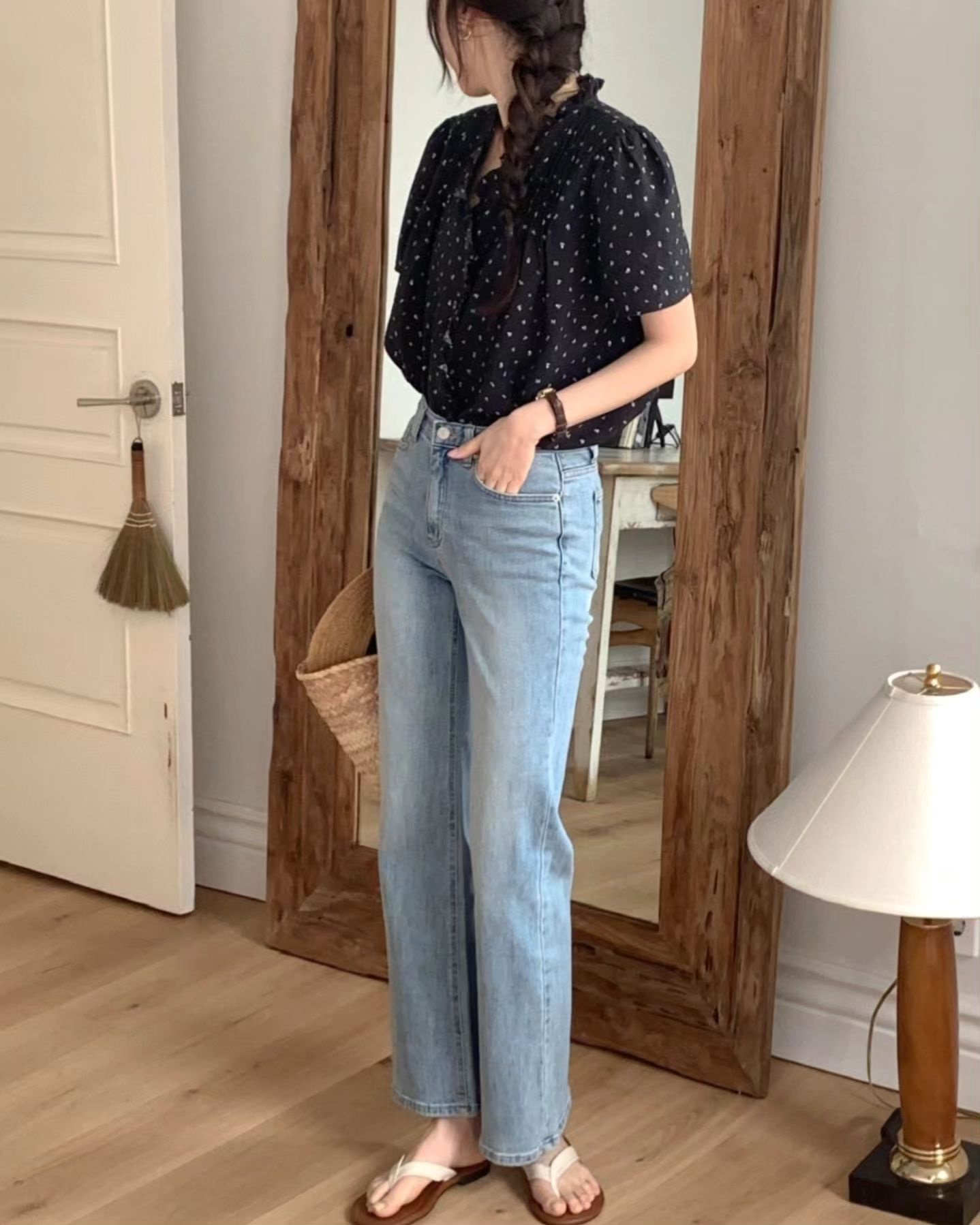 Quần jeans ống đứng vẫn luôn được các chị em ưa chuộng nhờ phom dáng gọn gàng, chỉn chu. Đây chính là lý do, quần jeans ống đứng không chỉ để mặc xuống phố mà còn có thể diện tới công sở.