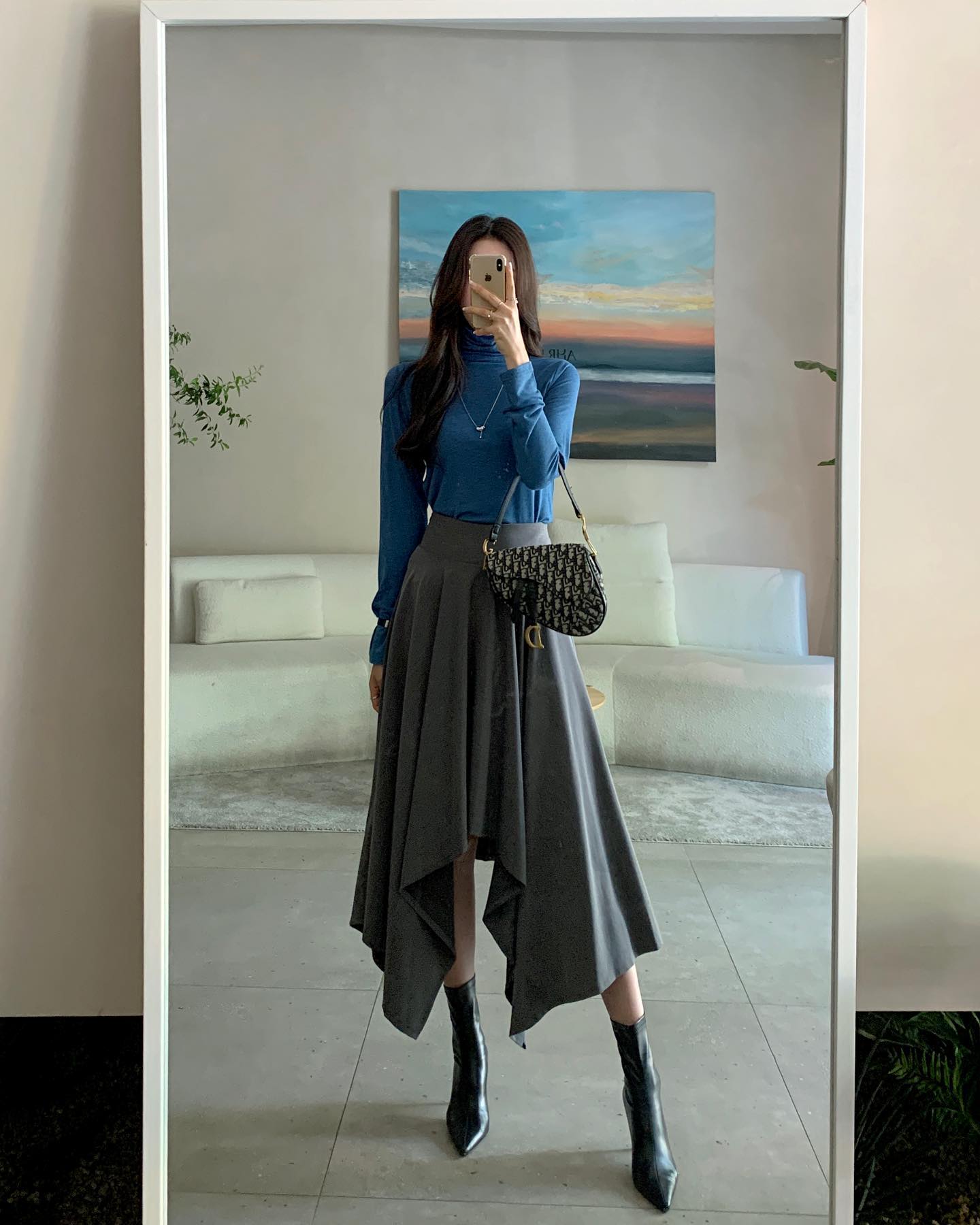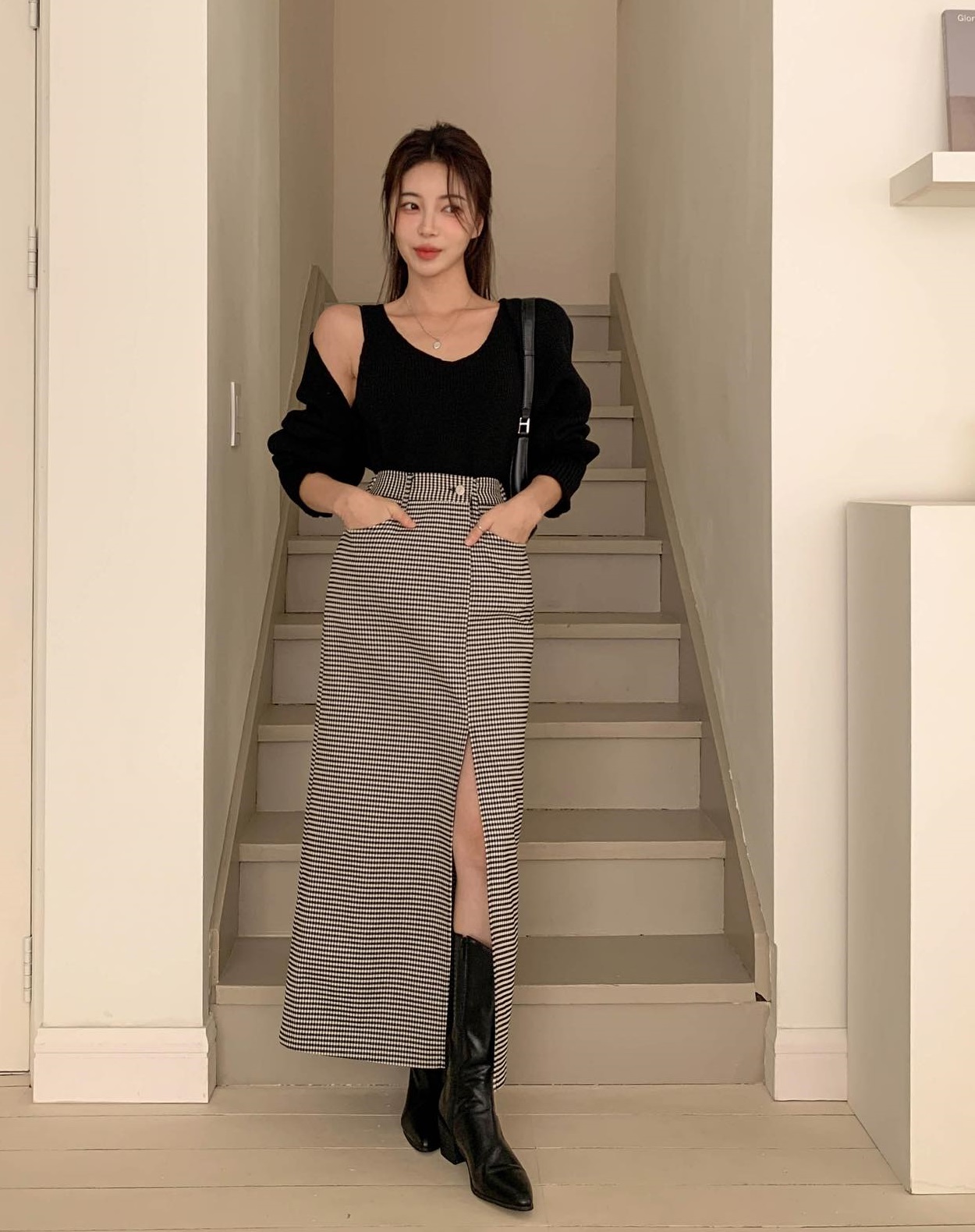 Diện boots với váy xẻ tà