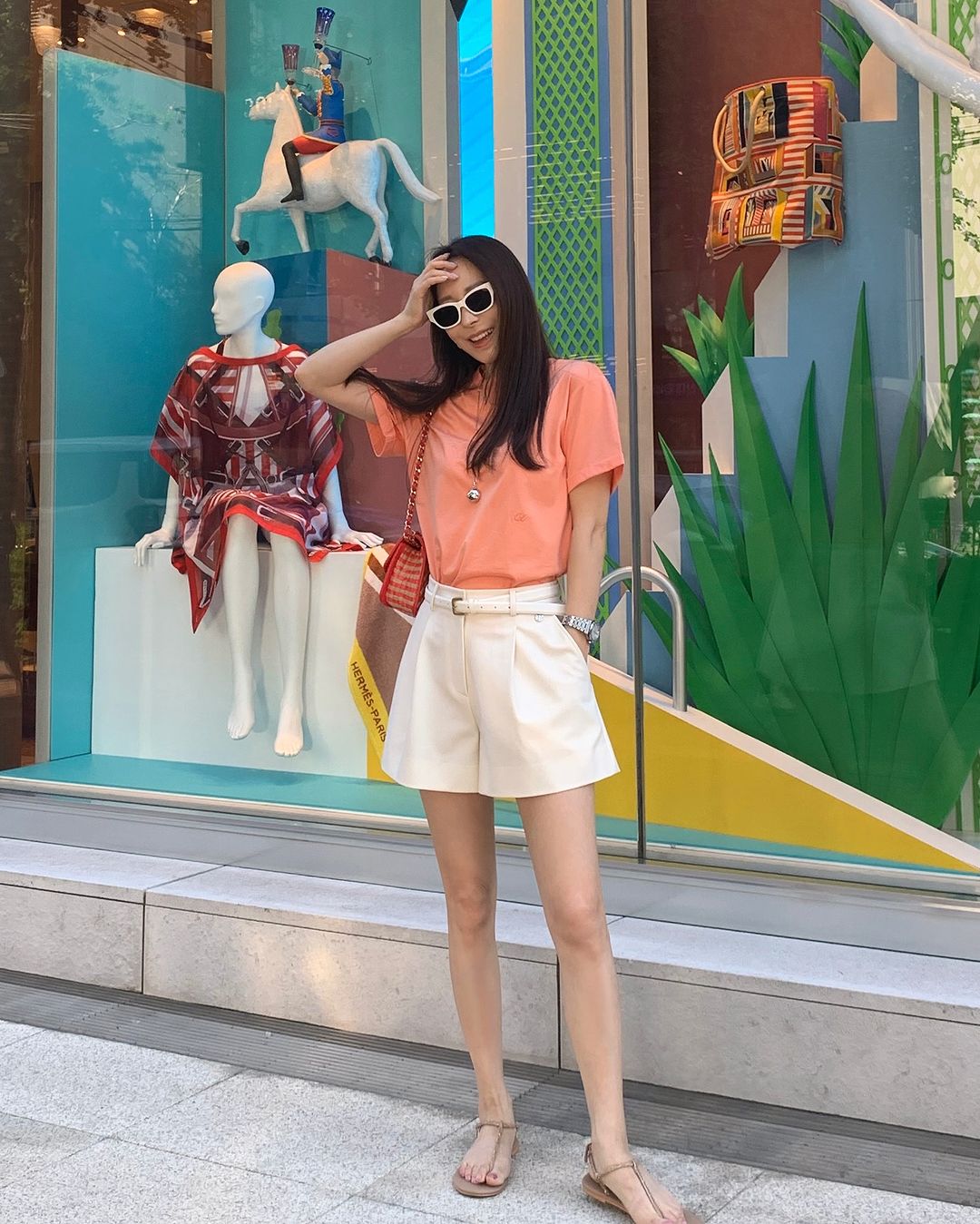 Đơn giản nhưng vô cùng tinh tế, sự kết hợp giữa quần short và áo thun trơn màu là một lựa chọn an toàn và dễ mặc. Áo thun trơn có thể là những tone màu cơ bản như trắng, đen, xanh navy hay be. Kết hợp cùng phụ kiện như túi xách, thắt lưng hoặc giày dép nổi bật sẽ giúp bộ trang phục trở nên thời thượng và cuốn hút hơn. Đây là lựa chọn hoàn hảo cho những ngày hè năng động và thoải mái.