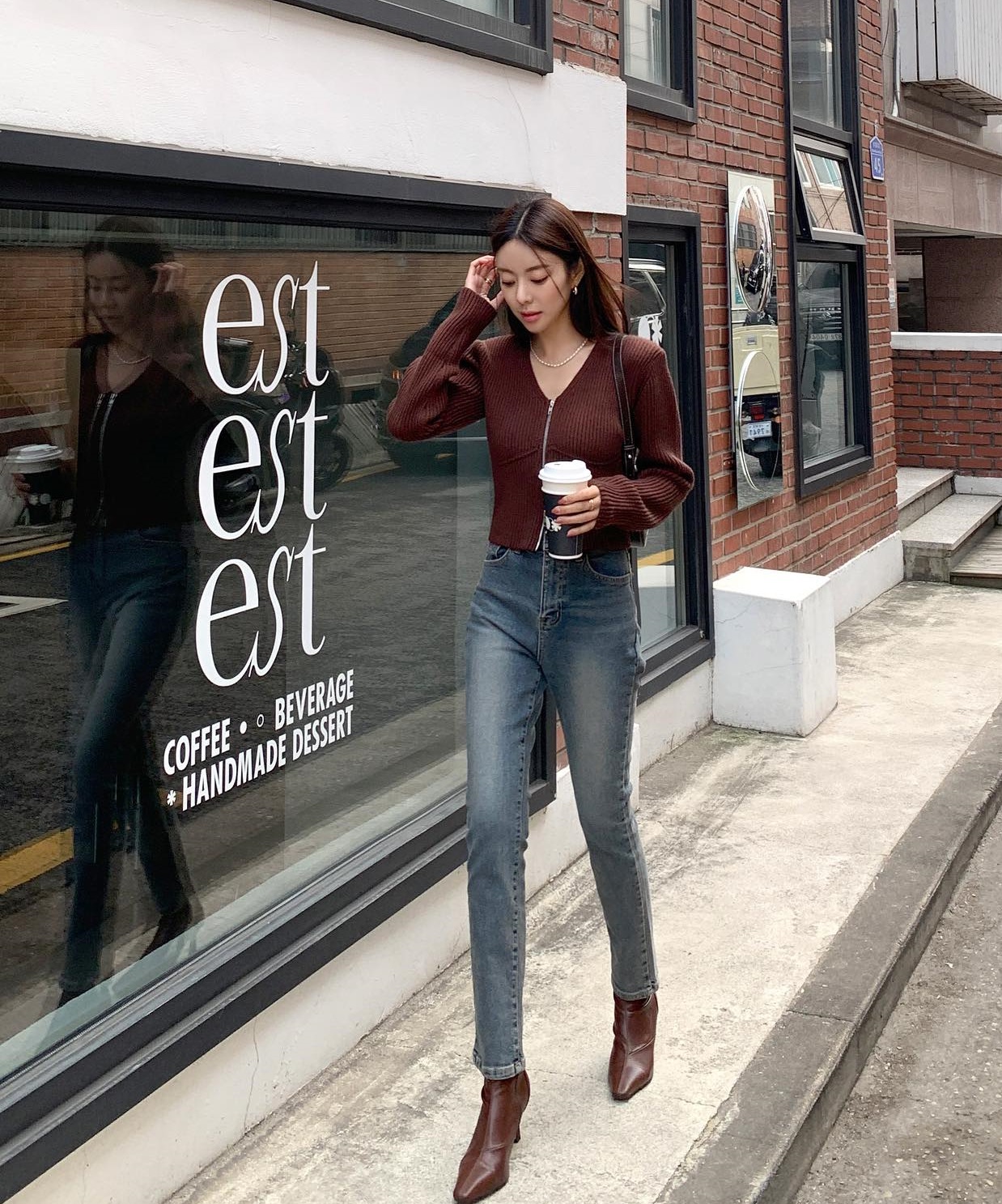Một số chị em có thể lo ngại rằng trang phục màu nâu dễ cộng tuổi cho diện mạo. Tuy nhiên, nếu phối đồ khéo léo, vẻ ngoài của bạn sẽ không "dừ" đi, trái lại còn toát lên sự trẻ trung, hiện đại. "Bí kíp" ở đây chính là kết hợp item tông màu nâu với đồ xanh denim, đồ màu trắng hoặc màu pastel. Cách kết hợp này không chỉ "hack" tuổi mà còn rất sang xịn mịn.