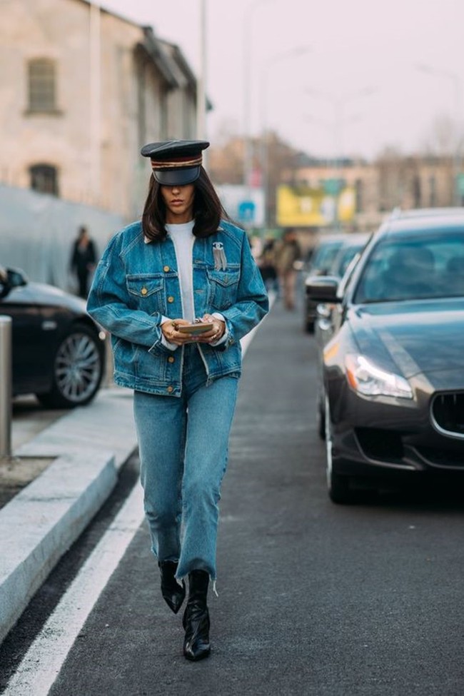 Ưu điểm lớn nhất của các trang phục bằng denim là có thể diện suốt 4 mùa. Thu Đông năm nay, nếu đang hướng đến diện mạo có phần cá tính, bụi bặm cũng như tìm kiếm một item đảm ăn nhập tuyệt đối với áo phông trắng, đừng quên denim jacket. Để hoàn thiện set đồ, bạn gái có thể chọn mix cùng quần jeans tiệp màu áo để tạo thành set đồ “denim on denim” hoàn chỉnh, cũng có thể chọn thiết kế khác như quần âu, chân váy maxi nhưng nên ưu tiên thiết kế đơn sắc và không quá cầu kỳ.