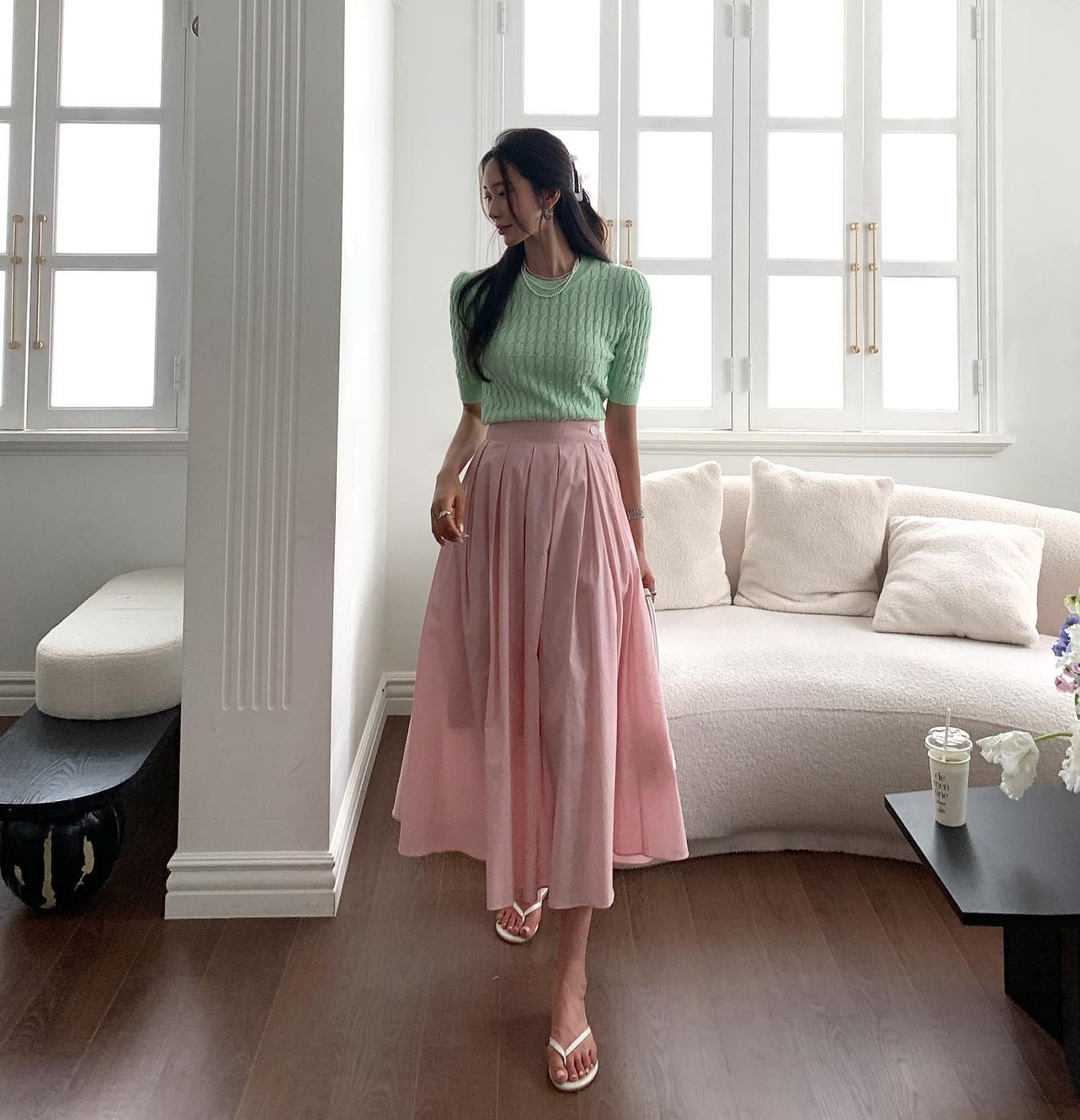 Chân váy màu pastel cũng là món thời trang chị em không nên bỏ qua khi mua sắm. Mẫu chân váy này gây ấn tượng ở sự ngọt ngào, tươi xinh. Bên cạnh đó, chân váy màu pastel vẫn ghi điểm trang nhã và thanh lịch. Mẹo diện chân váy dài, màu pastel của các quý cô sành điệu là kết hợp cùng áo màu trung tính. Như vậy, họ dễ dàng hoàn thiện tổng thể trang phục tinh tế và sang trọng. Không chỉ phù hợp để diện đi dạo phố, chân váy màu pastel còn tạo nên những bộ cánh công sở trẻ trung, thời thượng.