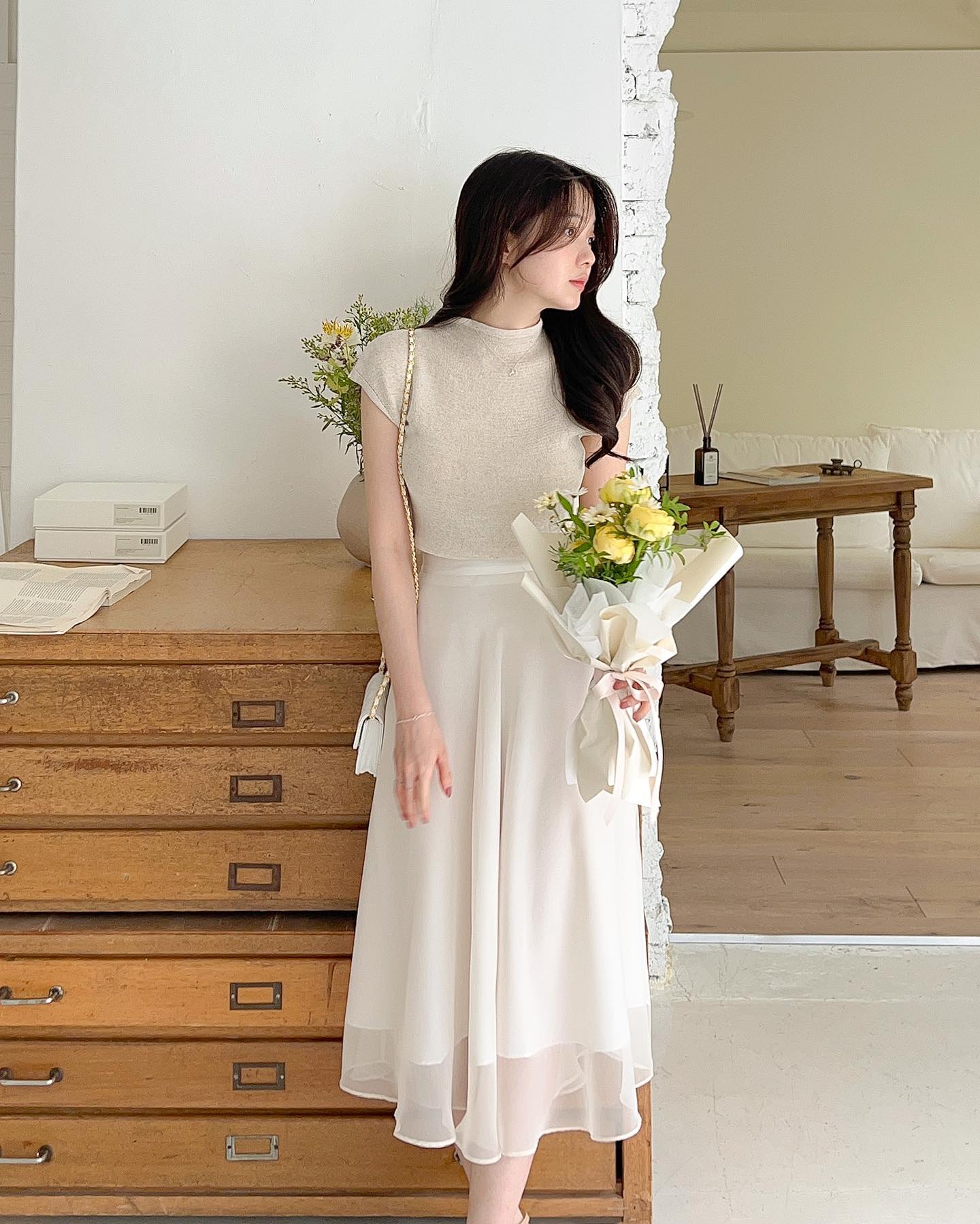 Chân váy dài màu trắng ghi điểm ở sự trang nhã và thanh lịch. Bên cạnh đó, mẫu chân váy này còn giúp tổng thể trang phục thêm tươi sáng, rạng rỡ. Nhờ vậy, người diện cũng có được vẻ ngoài trẻ trung. Không khó để bạn mặc đẹp với chân váy màu trắng. Món thời trang này kết hợp ăn ý với mọi kiểu áo sơ mi, áo blouse tay bồng, áo thun màu nhã nhặn để tạo nên bộ cánh hút mắt, sang xịn mịn.