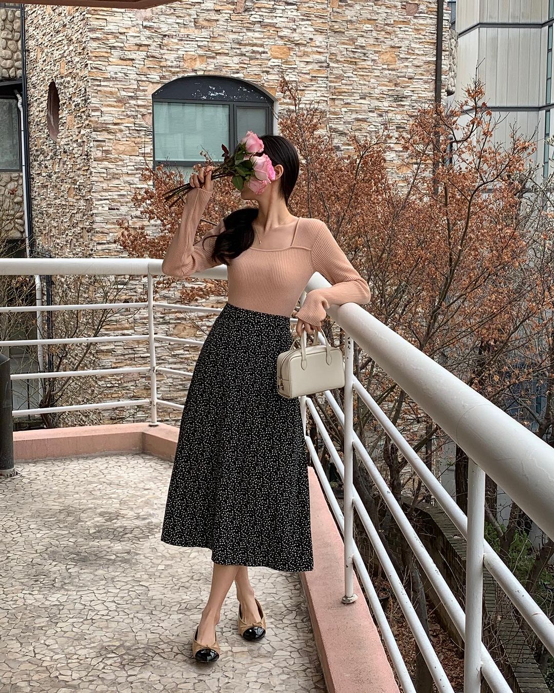 Chân váy dài được thêu hoặc in hoa sẽ tạo điểm nhấn và sự nổi bật cho trang phục. Hoa văn và thiết kế đa dạng trên kiểu chân váy còn mang đến vẻ tươi trẻ, nữ tính cho chủ nhân. Với chân váy hoa, bạn nên mix cùng những item tối giản, để tạo cảm giác cân bằng, tránh rối mắt cho tổng thể.
