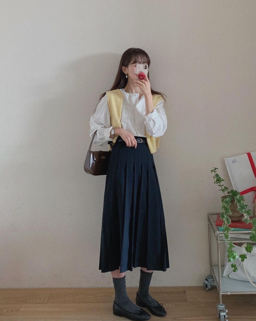 Chân váy dài xếp ly với những đường nếp gấp xinh xắn, tạo cảm giác chỉn chu, thanh lịch. Chân váy dài xếp ly cũng là mẫu chân váy kinh điển, không bao giờ lỗi mốt. Bạn có thể mix kiểu chân váy này với các loại áo blouse, áo sơ mi, áo thun…