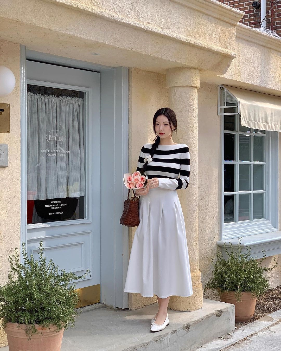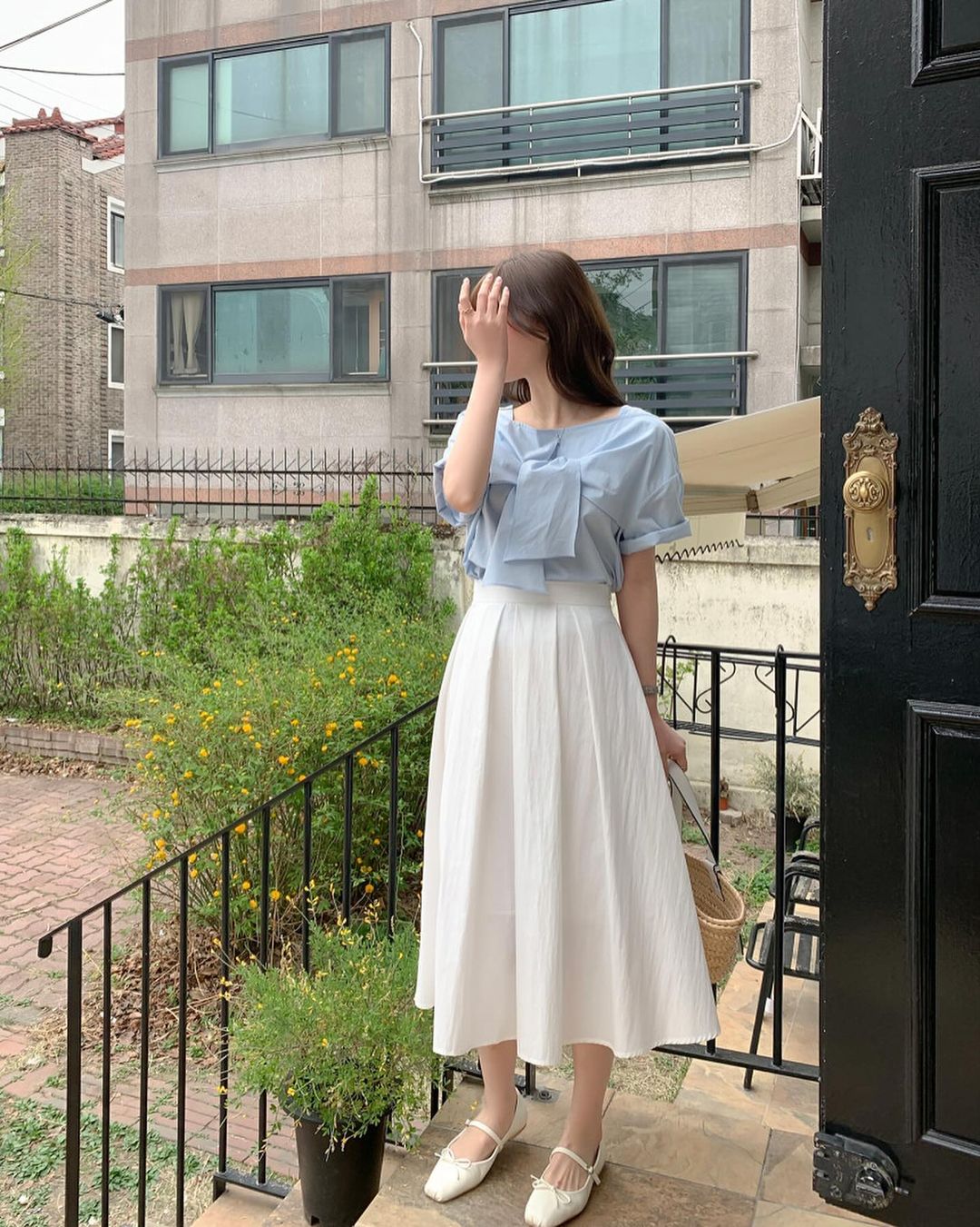 Chân váy dáng xòe luôn là lựa chọn ưu tiên để tạo ra vẻ nữ tính, duyên dáng. Với độ dài từ eo xuống, chân váy dáng xòe giúp tôn vùng eo thon thả, che khuyết điểm vùng đùi và tạo điểm nhấn cho vóc dáng. Bạn nên ưu tiên chọn chân váy dài với chất vải nhẹ nhàng như cotton hoặc chiffon, để tạo cảm giác thoáng mát và thoải mái trong ngày hè nóng bức.
