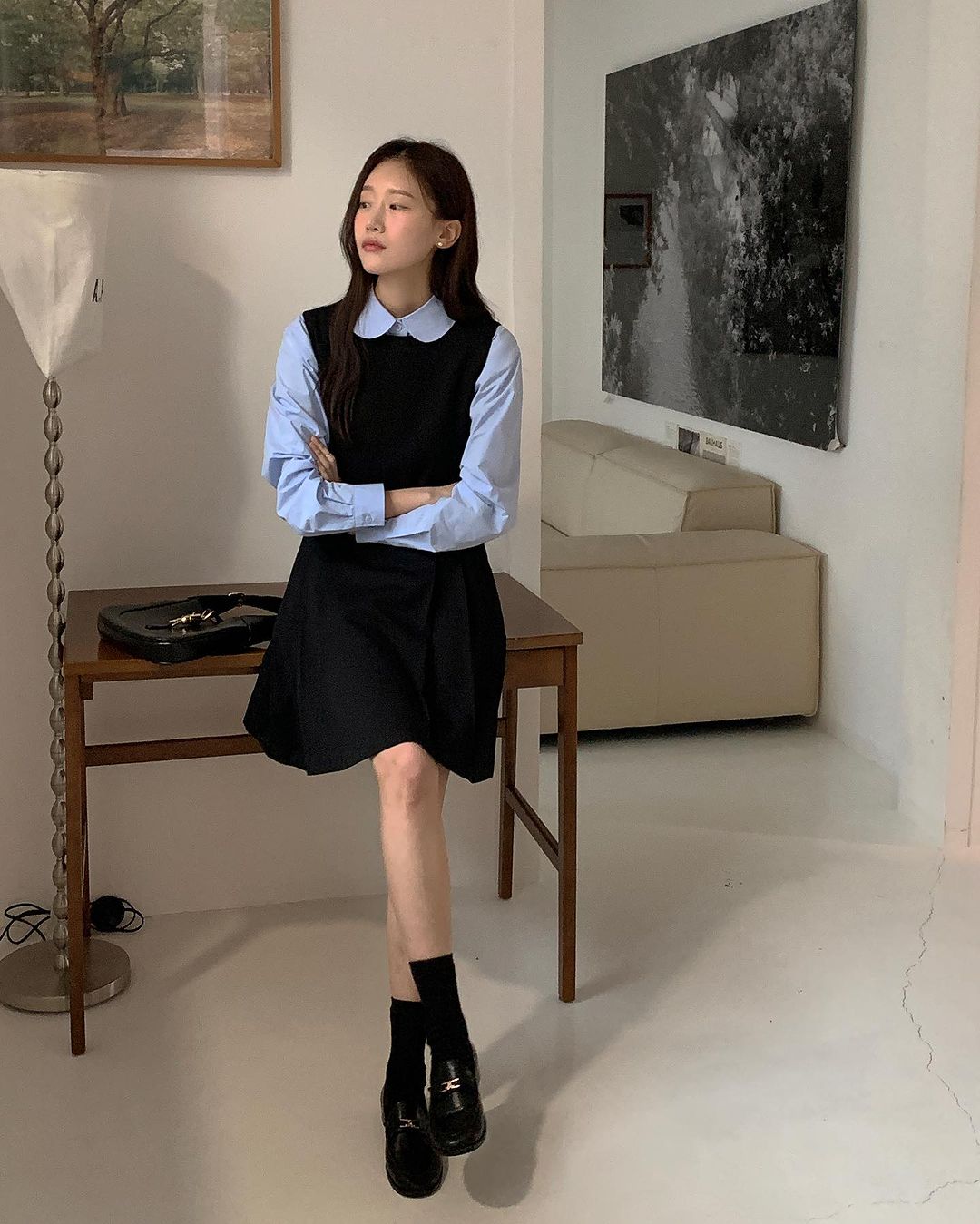 Để tạo nên phong cách trẻ trung và chuyên nghiệp, bạn có thể kết hợp đầm không tay với áo sơ mi. Đầm không tay kết hợp cùng áo sơ mi là combo đơn giản, nhưng sẽ giúp bạn ghi điểm thời thượng, sành điệu mà vẫn giữ được nét thanh lịch, chỉn chu chốn sở làm.
