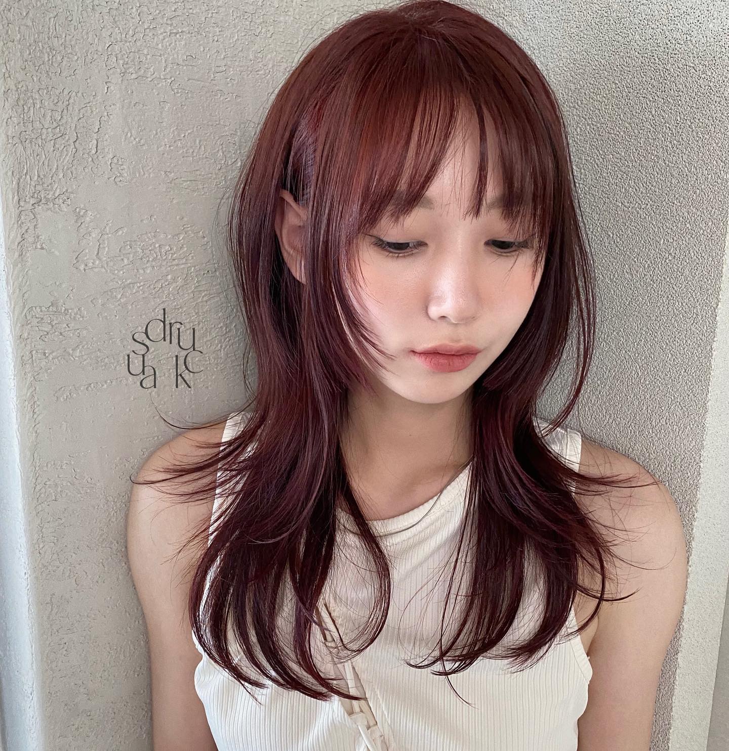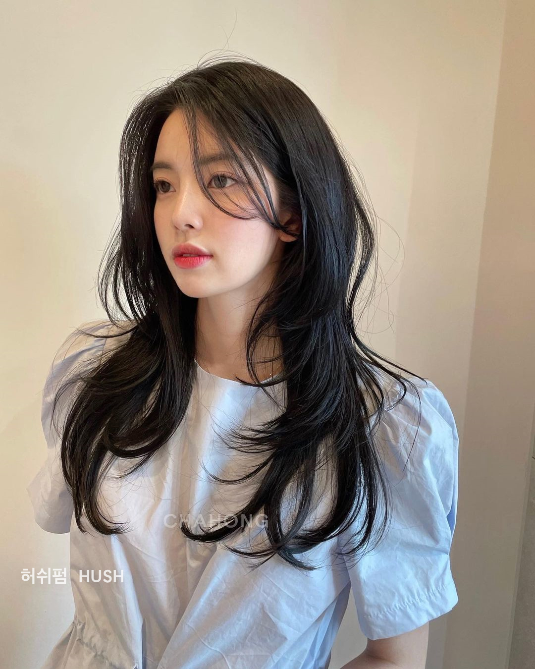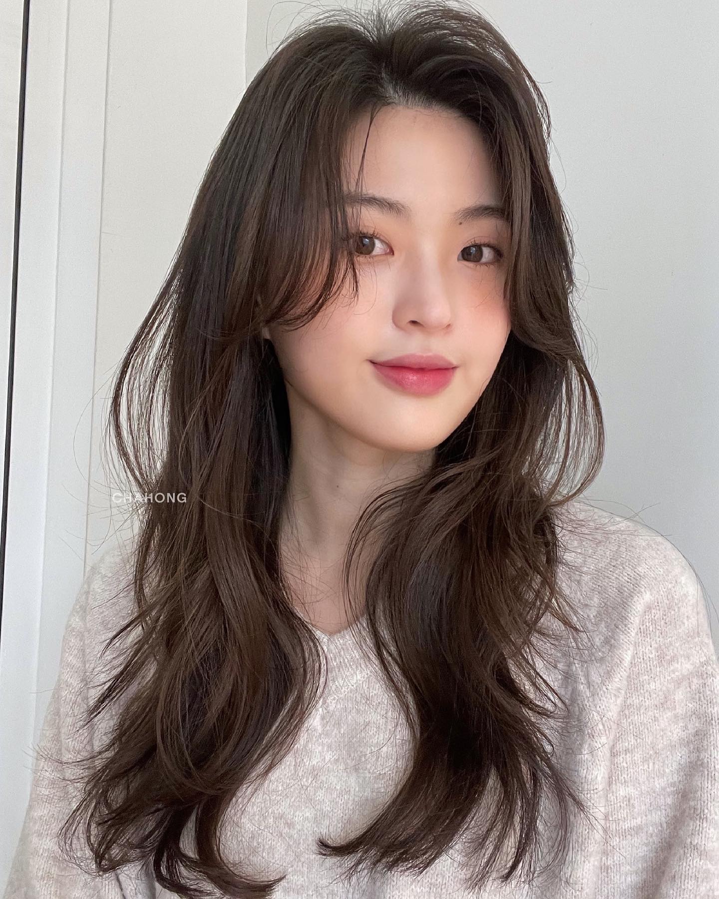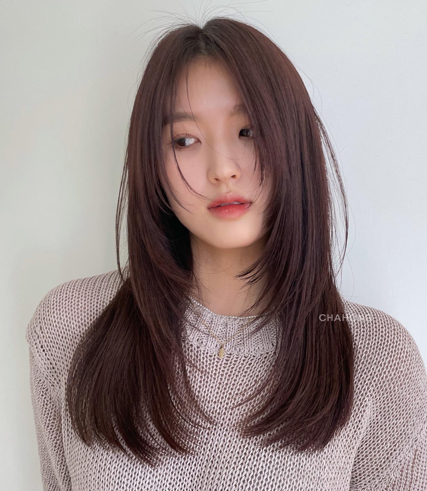 Nếu không thích cắt mái, nàng mặt vuông hãy tham khảo kiểu tóc tỉa layer, mái dài.
