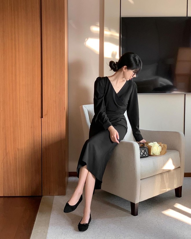 Tóc búi thấp là kiểu tóc truyền thống nhưng vẫn luôn được yêu thích và phù hợp với những cô nàng có style sang chảnh, quý phái. Bạn có thể tạo một búi thấp gọn gàng phía sau gáy hoặc phía sau tai. Kiểu tóc này tạo nên vẻ đẹp thanh lịch, sang trọng, đồng thời giúp tôn lên vẻ nữ tính của váy liền.