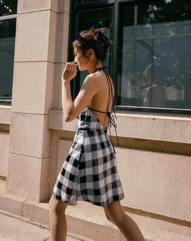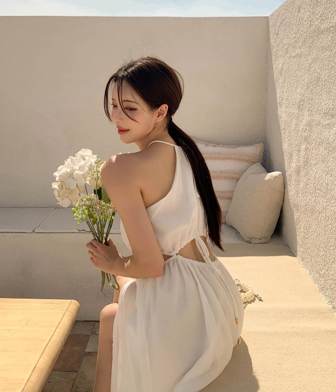 Tóc buộc thấp rất dịu dàng và nữ tính. Do đó, đây thường là kiểu tóc đầu tiên chị em nghĩ tới khi diện váy. Kiểu tóc buộc thấp phù hợp với các mẫu váy đứng dáng, giúp chính chủ có được vẻ ngoài sang trọng và thanh lịch. Muốn tạo điểm nhấn nổi bật, chị em hãy cố định kiểu tóc buộc thấp bằng dây vải scrunchie hoặc một chiếc khăn lụa. Những món phụ kiện này ngọt ngào và hợp mốt, giúp nâng tầm nhan sắc hiệu quả.