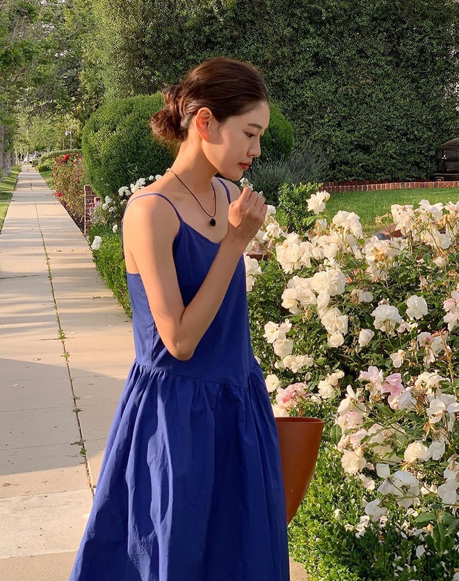 Tóc búi thấp được chị em yêu thích quanh năm. Kiểu tóc này tạo sự gọn gàng cho gương mặt. Tóc búi thấp phiên bản hiện đại thường có độ rối nhẹ, từ đó giúp nâng tầm nhan sắc hiệu quả. Áp dụng kiểu tóc búi thấp khi diện váy, các nàng sẽ có vẻ ngoài nữ tính và "ăn ảnh". Diện mạo của các nàng còn trở nên long lanh hơn nếu được tô điểm một đôi khuyên tai. Ngoài ra, vòng cổ ngọc trai cũng là món phụ kiện lý tưởng để diện khi bạn mặc váy và búi tóc.