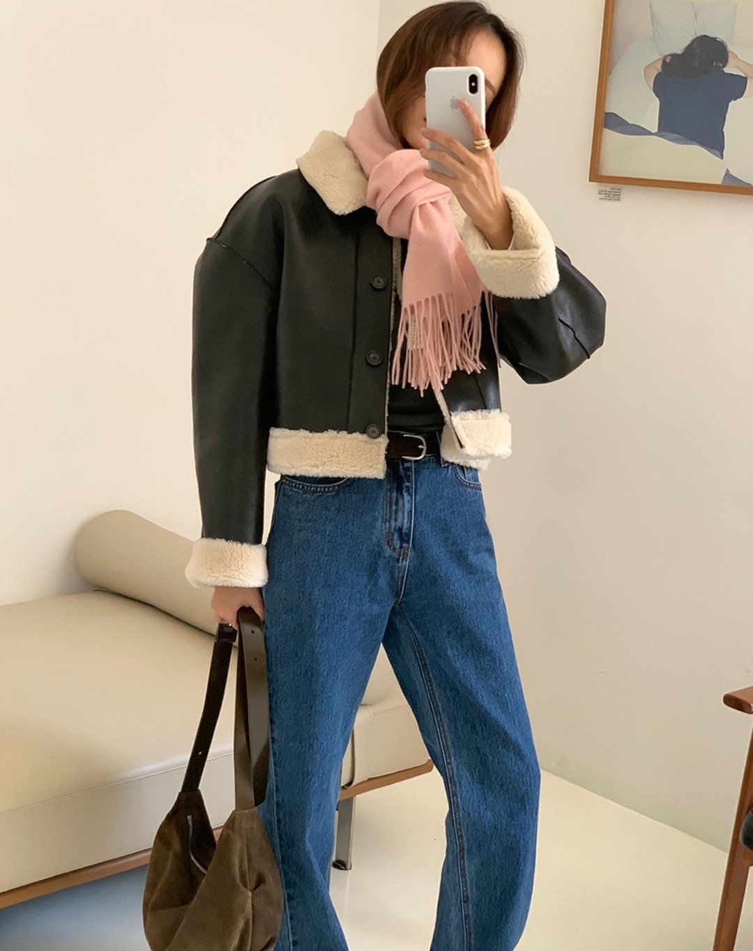 Áo khoác da rất bụi bặm và cá tính, mẫu áo này mang đến hiệu quả "hack" tuổi cho người diện. Áo khoác da thường mang tông màu trung tính như đen, nâu hoặc xám làm chủ đạo. Do đó, mẫu áo này rất dễ phối đồ, giúp chị em có được những bộ trang phục hài hòa, đẹp mắt. Áo khoác da vốn dĩ nổi bật nên chị em chỉ cần kết hợp cùng các item đơn giản như áo len trơn màu, quần âu hoặc quần jeans, vẻ ngoài đã rất ấn tượng. Áo khoác da là món thời trang luôn chuẩn mốt nên khi sắm cho tủ đồ, chị em có thể mặc được trong vài năm nữa.