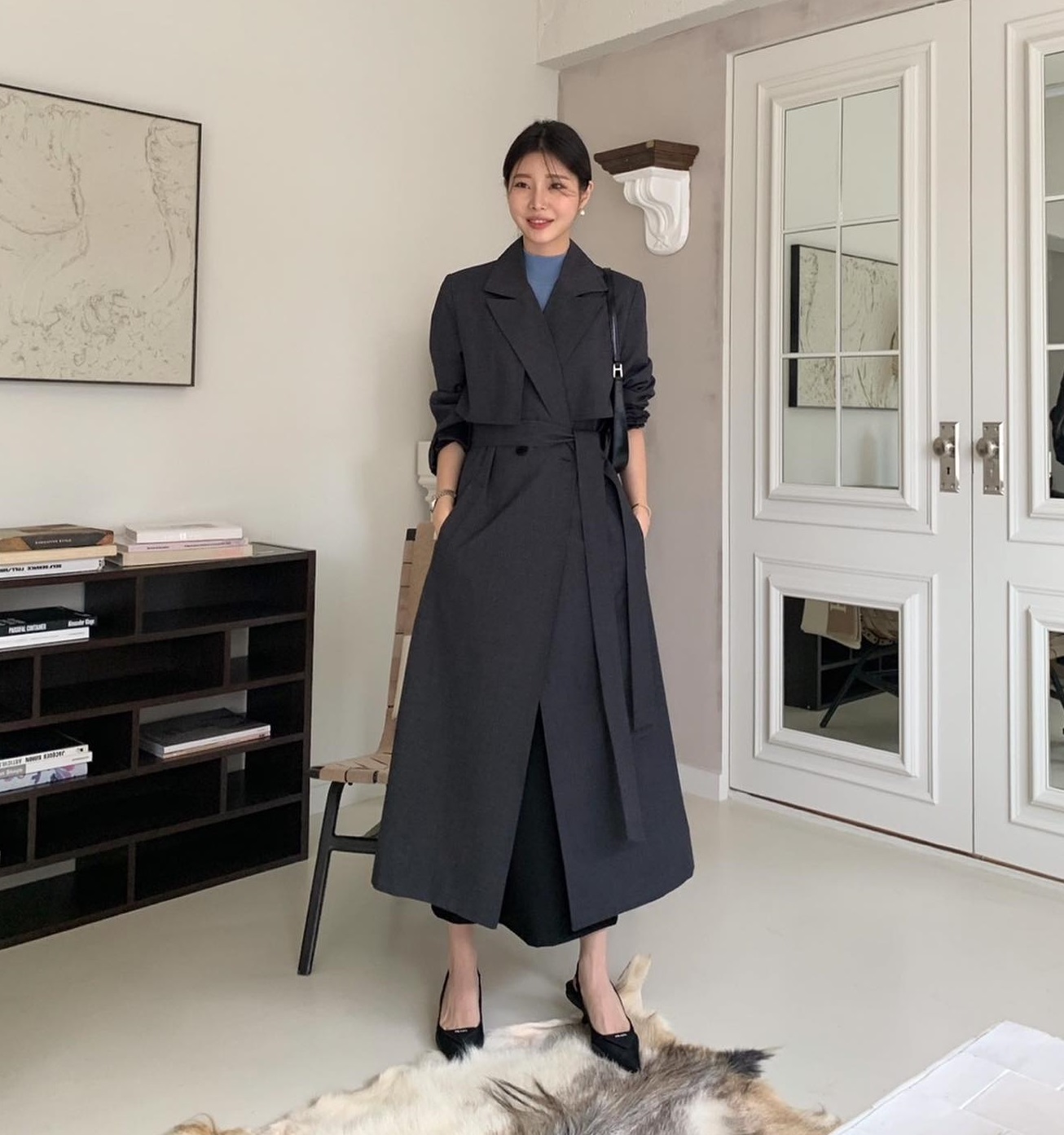 Tủ đồ mùa đông của chị em khó có thể thiếu đi một chiếc áo khoác dạ. Mẫu áo khoác này rất ấm áp, lý tưởng để diện trong những ngày rét đậm. Áo khoác dạ dáng dài mang đến nét thanh lịch và sang trọng cho người mặc. Bạn nên ưu tiên các mẫu áo khoác dạ mang tông màu đen, trắng, be hoặc xanh navy để giữ đúng tinh thần của phong cách tối giản. Ngoài ra, các mẫu áo khoác dạ mang tông màu trung tính còn dễ phối đồ và đảm bảo sự hài hòa, tinh tế cho tổng thể trang phục.