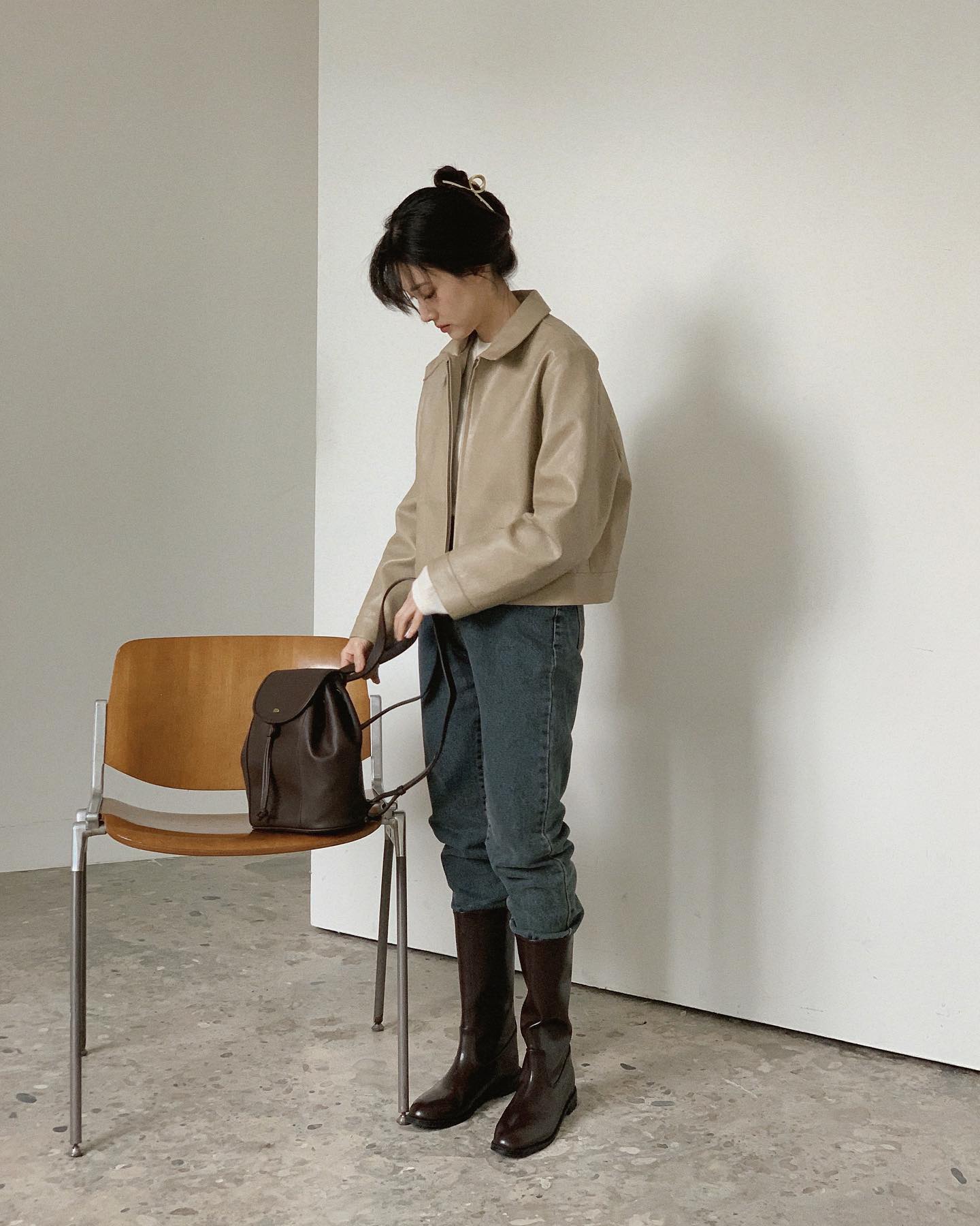 Khi theo đuổi thời trang tối giản, chị em vẫn có thể diện những mẫu áo khoác cá tính như áo da. Đây là mẫu áo bụi bặm và nổi bật, nhưng vẫn có sự trang nhã. Bên cạnh đó, áo khoác da còn là món thời trang luôn chuẩn mốt, mùa đông năm nào cũng được hội sành điệu ưa chuộng. Các nàng nên chọn áo khoác da dáng ngắn. Mẫu áo này giúp vẻ ngoài thêm năng động, trẻ trung và có thể tôn dáng tối ưu. Áo khoác da kết hợp ăn ý với nhiều kiểu quần dài, đặc biệt là quần jeans bụi bặm.