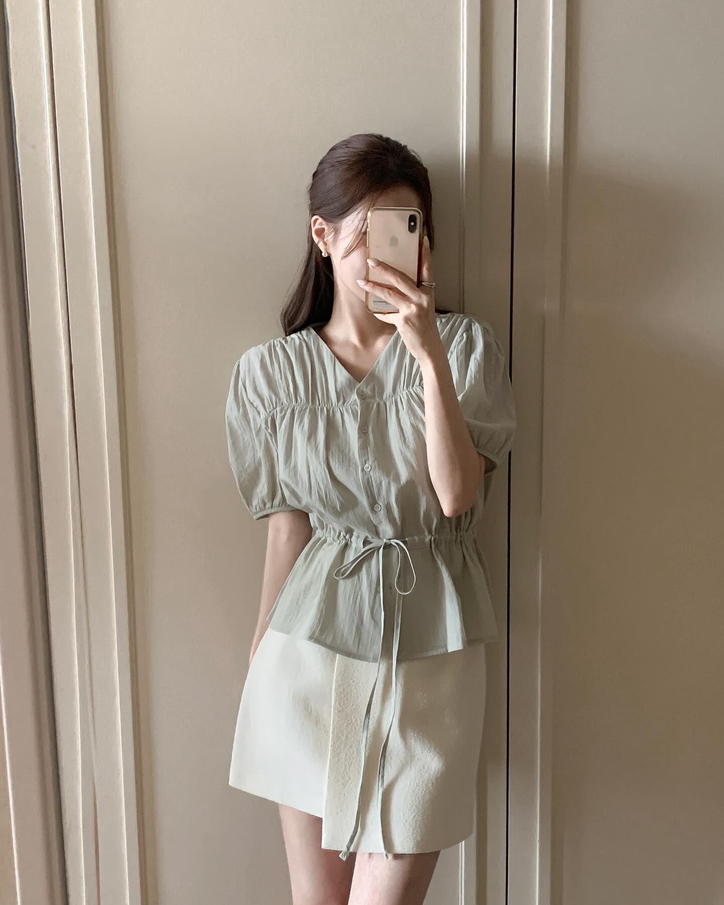 Phiên bản áo blouse phủ sóng mùa hè năm nay chính là thiết kế có chi tiết tay bồng. Mẫu áo này mang đến sự yêu kiều, sang chảnh cho phong cách mà vẫn ghi điểm trẻ trung.
