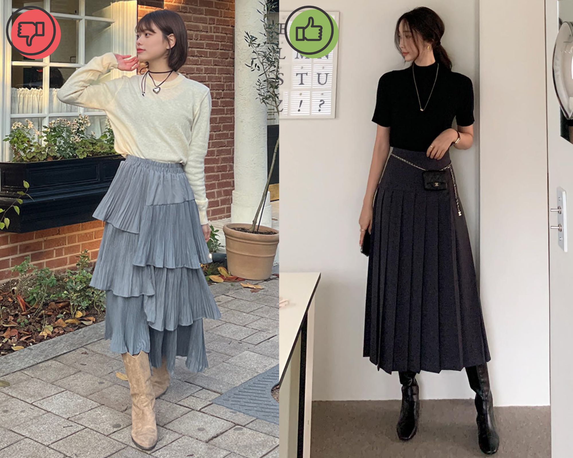 Chân váy xếp nhiều tầng có thể giúp vẻ ngoài của chị em nổi bật hơn nhưng item này khó phối đồ và dễ khiến vẻ ngoài trông kém sành điệu. Chưa hết, chân váy xếp nhiều tầng là mốt của vài năm trước còn ở hiện tại, kiểu chân váy này đã không còn hợp xu hướng.