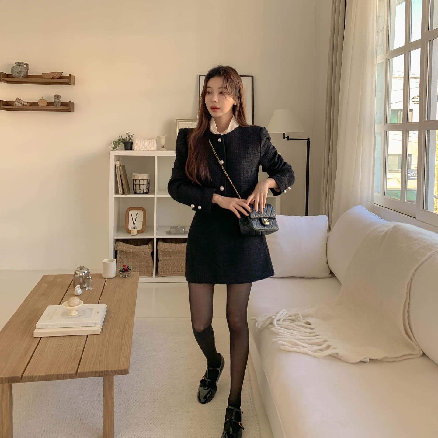 Quần tất đen đang là món phụ kiện rất "hot" trong thời gian gần đây. Quần tất đen sẽ mang đến hiệu quả giữ ấm khi chị em diện váy trong mùa lạnh. Chưa hết, quần tất đen còn là "bảo bối" tôn dáng hiệu quả. Cụ thể, món phụ kiện này sẽ giúp khắc phục nhược điểm, tạo hiệu ứng chân thon dài hơn. Nếu kết hợp váy liền và quần tất đen với các kiểu giày như boots cao cổ/thấp cổ, giày cao gót mũi nhọn, giày Mary Jane, chị em sẽ hoàn thiện được bộ trang phục đầy sang trọng, tôn dáng tối ưu.