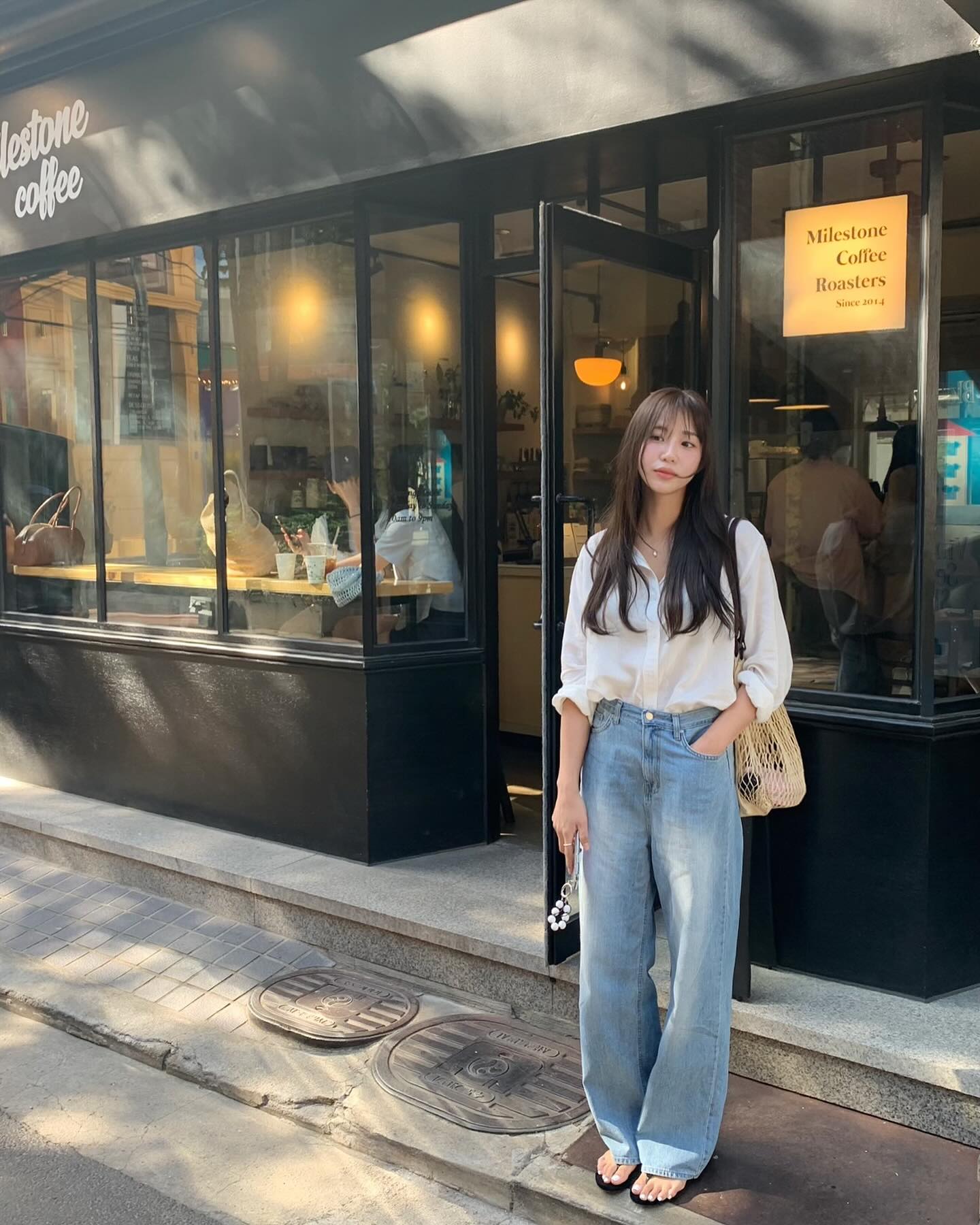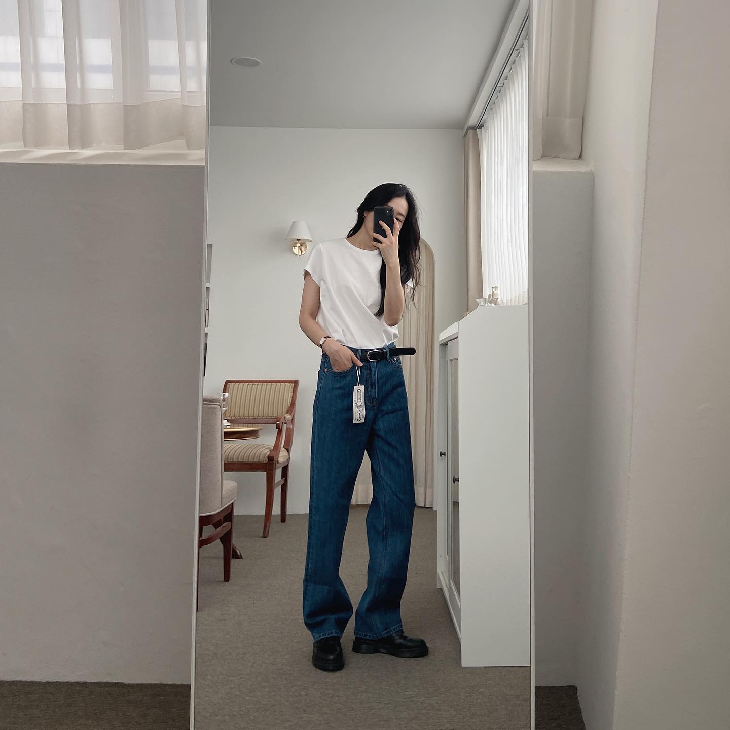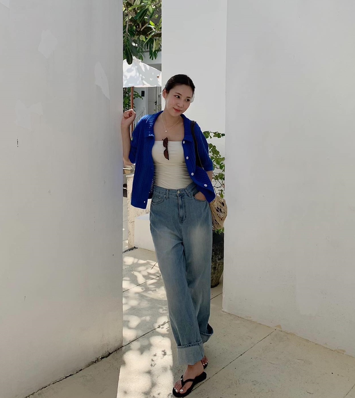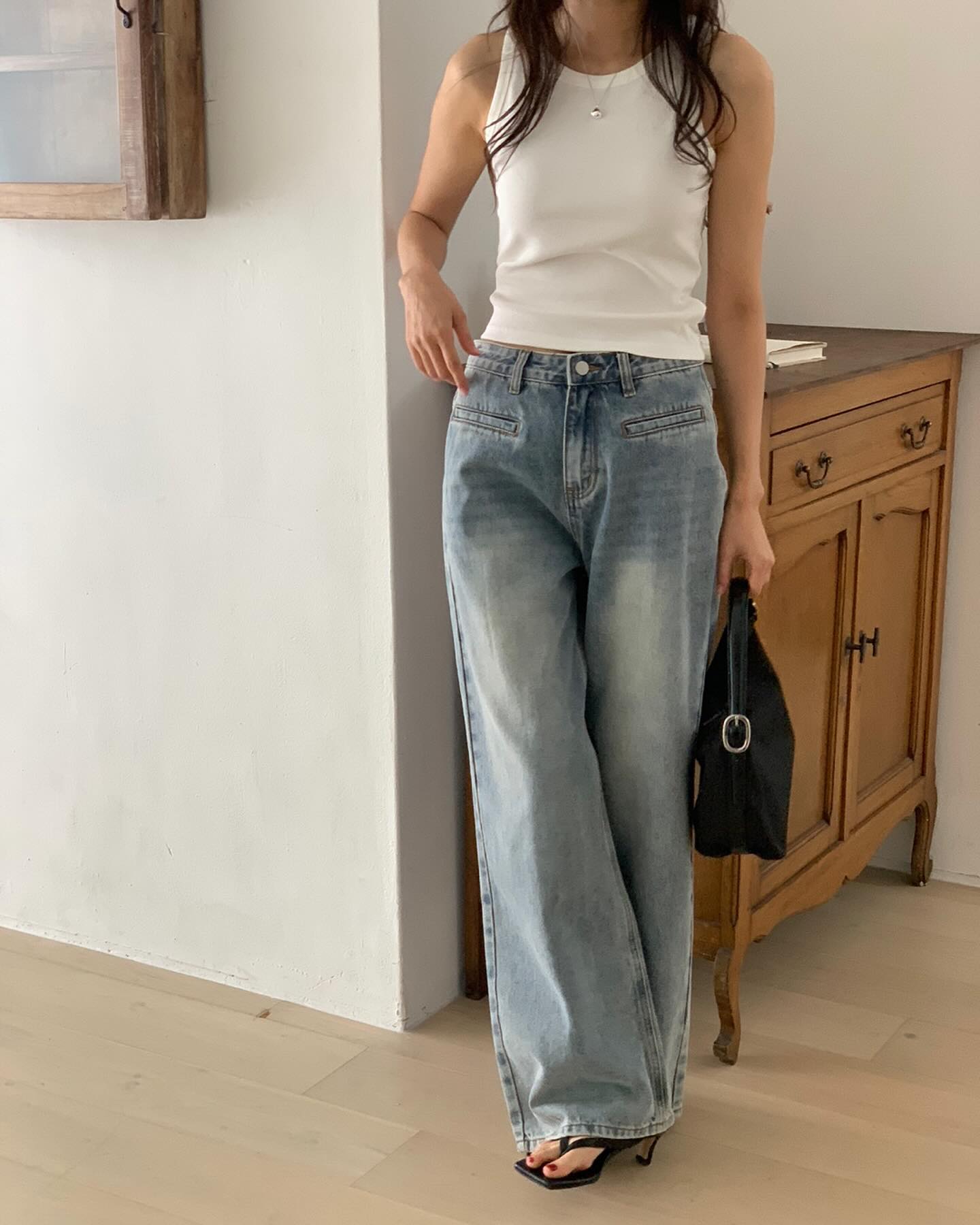 Chị em không nên chọn mẫu quần jeans quá dài rộng để tránh bị "dìm" dáng. Thay vào đó, các nàng hãy ưu tiên quần jeans ống rộng vừa phải, dài ngang mắt cá chân và không quên sơ vin gọn gàng khi diện. Như vậy, vóc dáng sẽ có được độ cao ráo, thanh thoát.