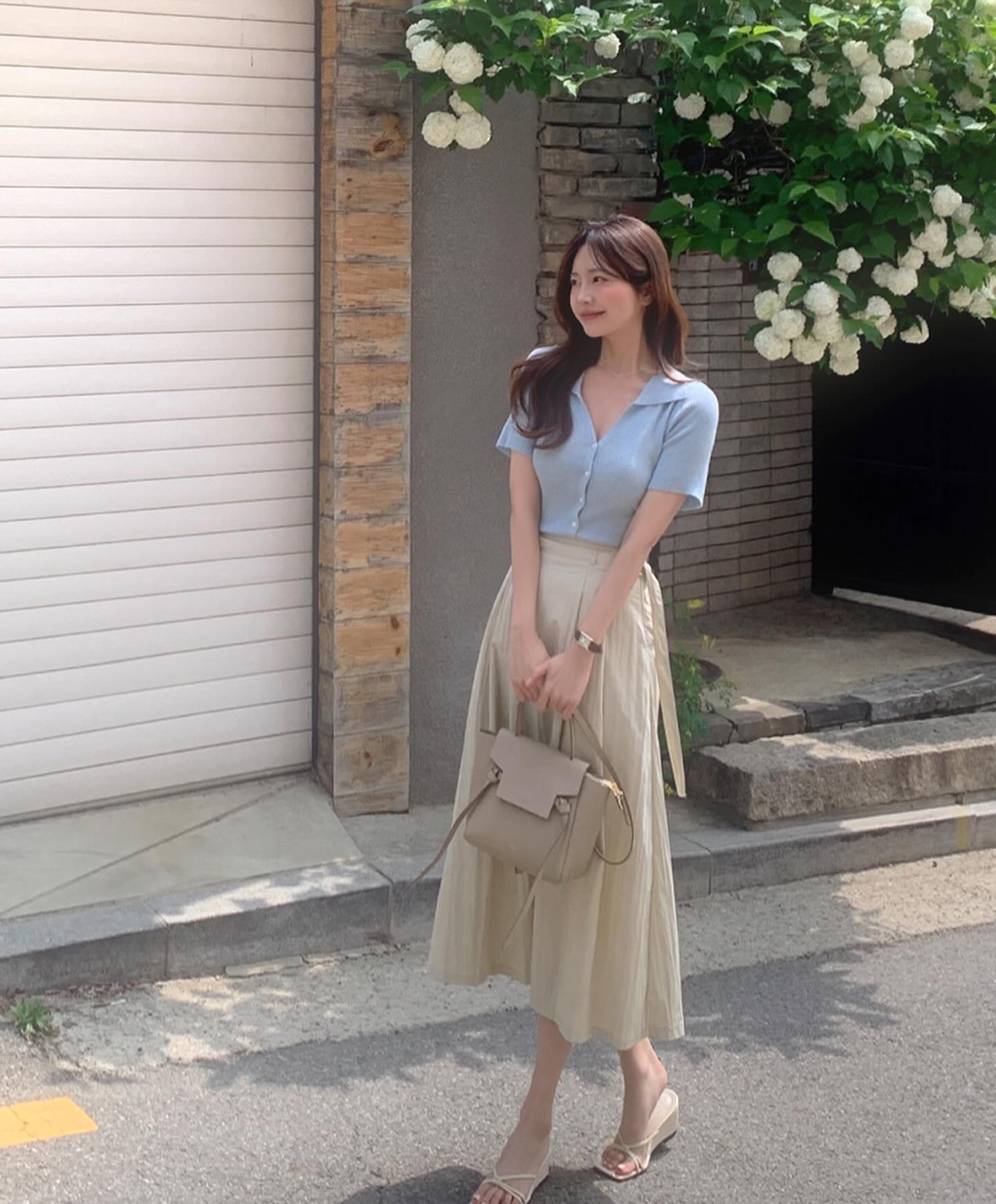Chân váy chữ A có nhiều biến tấu để chị em lựa chọn như là chân váy màu be, chân váy trắng, chân váy xếp ly… Để phát huy tối ưu hiện quả tôn dáng của chân váy chữ A, đồng thời tăng thêm sự chỉn chu, thanh lịch cho phong cách, chị em hãy sơ vin gọn gàng.