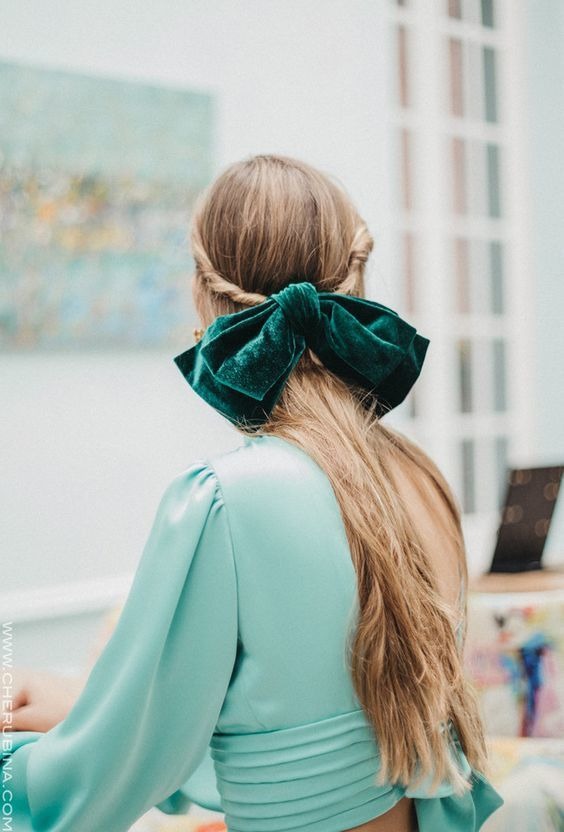 Bạn hãy thử buộc tóc rồi trang trí thêm chiếc nơ, hứa hẹn bạn sẽ thấy mình khác trông nữ tính hơn khi ngắm mình trong gương. Chiếc nơ màu xanh này tạo cho bạn vẻ ngoài xinh đẹp và nổi bật hơn.