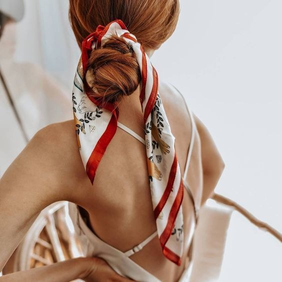 Bối tóc thấp buộc một chiếc khăn lụa duyên dáng lên tóc thì bạn có thể yên tâm rằng mái tóc mình sẽ thôi hút mắt người đối diện.