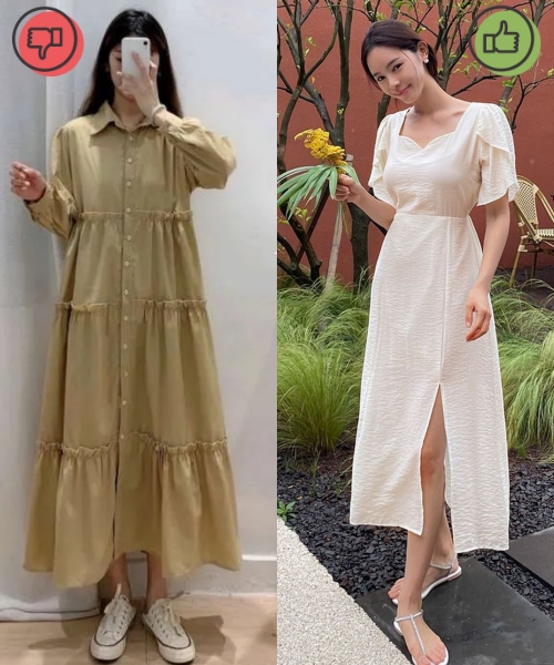 Những mẫu váy quá dài sẽ tạo cảm giác tù túng và khiến đôi chân của bạn trông ngắn hơn, vóc dáng kém cao ráo. Nếu vẫn muốn diện váy dài thì bạn nên ưu tiên cho những mẫu váy có thiết kế tối giản, có thêm chi tiết xẻ tà để tôn dáng cao ráo hơn.