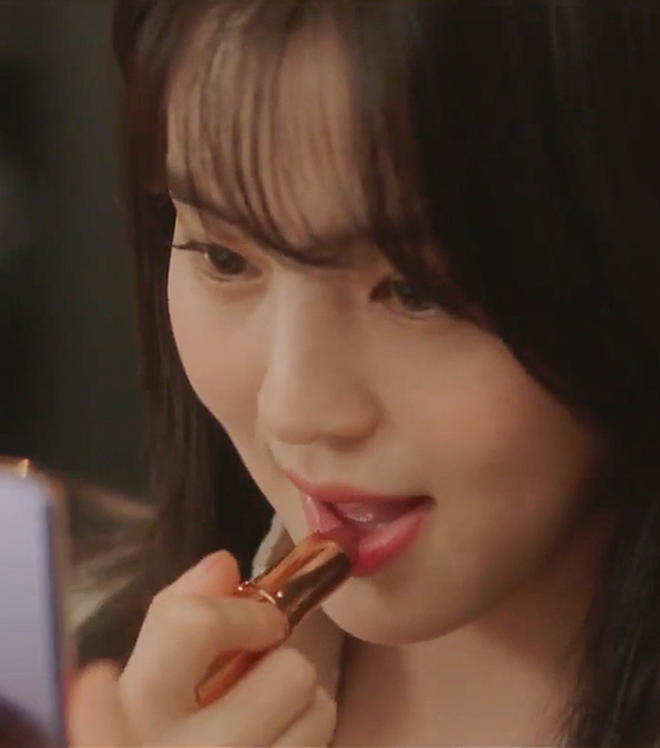 Trong Nevertheless, Han So Hee ''đốn tim'' người hâm mộ với nhan sắc mỏng manh, ngọt ngào chuẩn nàng thơ. Và thỏi son giúp nữ diễn viên tôn lên nét đẹp này chính là Charlotte Tilbury màu Pillow Talk. Mã màu Pillow Talk mà Han So Hee lựa chọn sở hữu gam màu hồng nâu ngả nude rất dễ dùng và không hề kén da. Nhiều chị em sau khi ''tậu'' em son này về còn hết lời khen ngợi chất son mềm mịn và cảm giác nhẹ nhàng, mướt môi mà chúng đem lại. Hiện thỏi son này có giá khoảng 800k.