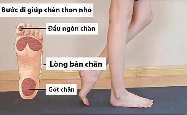 Ngay cả tư thế bước đi của bạn cũng giúp đôi chân thon và gầy hơn. Chắc hẳn bạn thường không mấy để tâm đến mỗi bước đi nhưng nếu chú ý một chút, hạ gót chân trước rồi đến mũi chân, đây là tư thế bước đi chuẩn chỉnh để bạn có được bắp chân và bắp đùi thon thả.