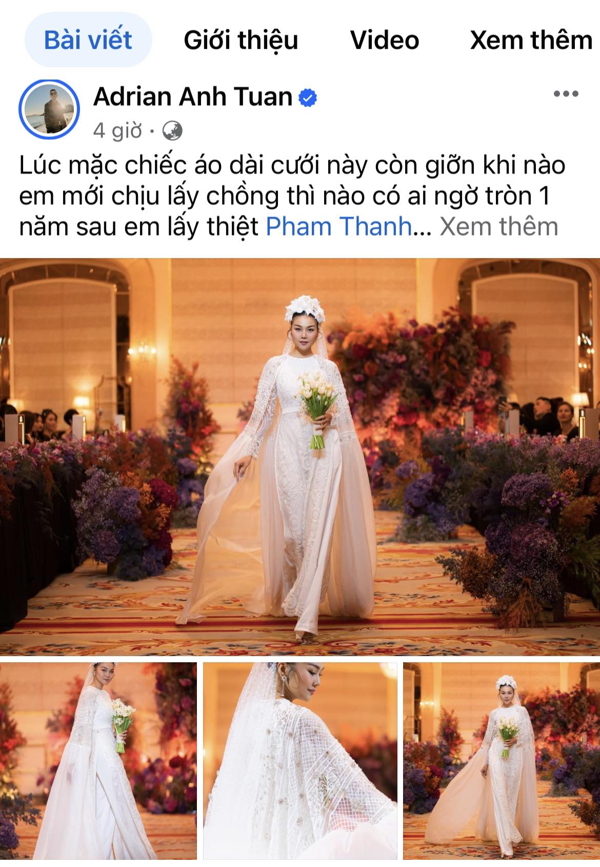 NTK Adrian Anh Tuấn cũng chia sẻ về tin vui của siêu mẫu Thanh Hằng nhưng tuyệt nhiên không hề hé lộ thông tin về mẫu váy cưới của "cô dâu tháng 10" tới đây.