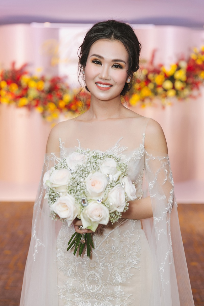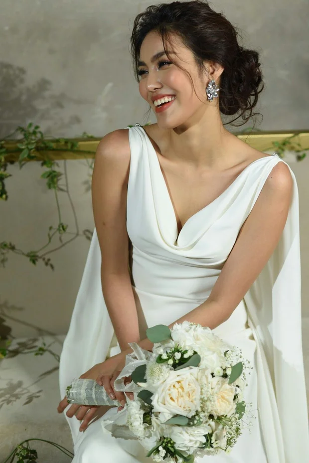 Diễn viên Phương Oanh xinh đẹp, gợi cảm vô cùng trong thiết kế váy cưới cúp ngực của thương hiệu Lek Chi. Cô chọn váy cưới cúp ngực thanh lịch, búi tóc đơn giản và trang điểm nhẹ nhàng. Đây có thể là chiếc váy sẽ được nữ diễn viên "Hương vị tình thân" mặc trong đám cưới chính thức hiện vẫn được giữ kín thời gian và địa điểm tổ chức.