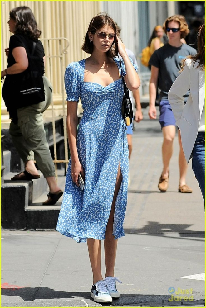Một trong những kiểu váy được Kaia lăng xê nhiệt tình nhất phải kể đến váy hoa nhí. Cô thường ưu tiên phom dáng dài với họa tiết nhỏ xinh. Ngoài ra, các mẫu váy lọt vào tầm ngắm của Kaia còn có kiểu dáng điệu đà với thiết kế cổ vuông hoặc cổ tim duyên dáng. Chưa kể, chúng còn dễ mặc và đáng yêu vô cùng