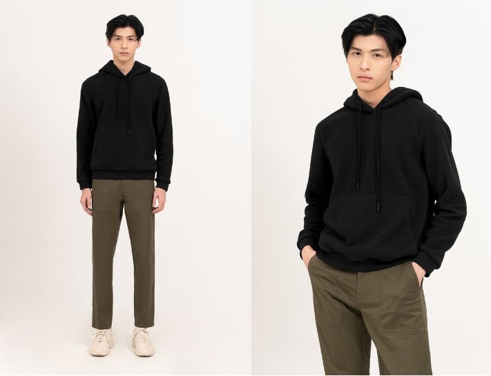 Phối đồ với quần kaki và áo hoodie đơn giản