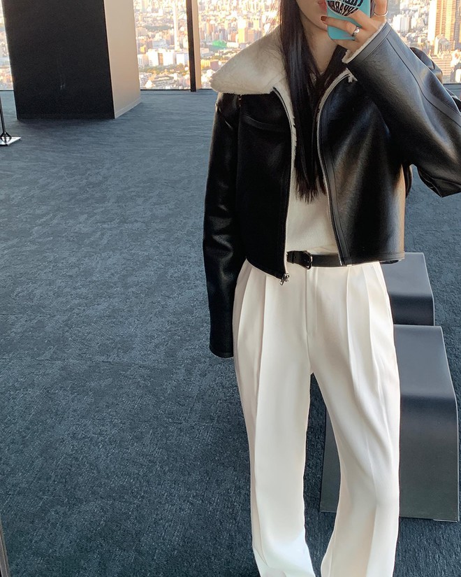 Ở Hàn hiện tại, các chị em cũng đã xúng xính diện áo da. Phổ biến nhất hiện nay là áo blazer da, áo da dáng biker, áo da phi công, áo da bomber. Và nếu như trước đây, dân tình chỉ diện áo da đen cơ bản thì hiện tại, bảng màu đã phong phú hơn với các tông hồng Barbie, đỏ burgundy, nâu đất, rêu ánh ghi...