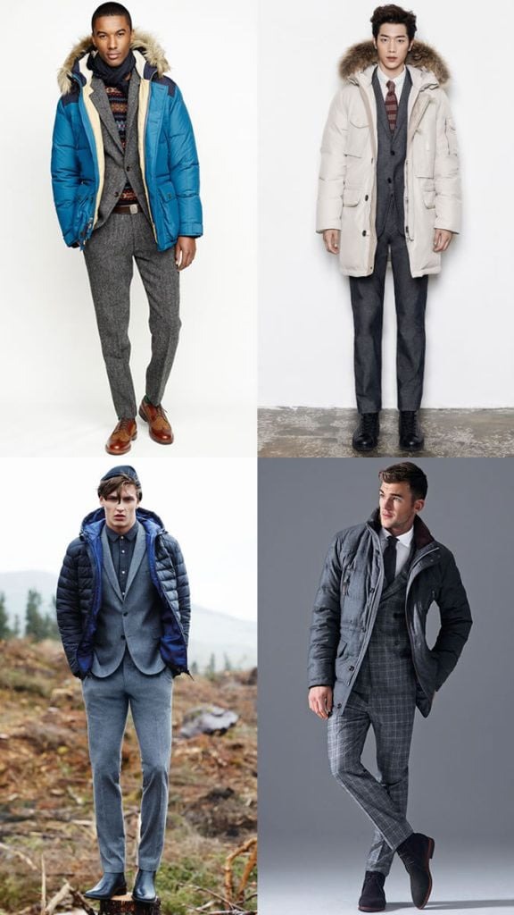 Áo phao nam kết hợp với áo măng tô