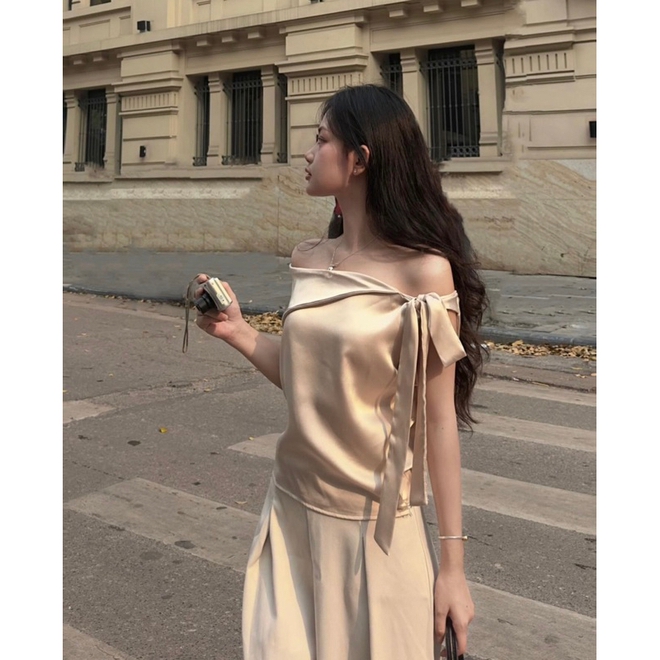 Áo dây cột cổ (halter top) tạo điểm nhấn với thiết kế buộc dây quanh cổ, giúp tôn lên bờ vai và lưng trần gợi cảm. "Vibe" của item này là sự pha trộn giữa tự do, phóng khoáng và nét cuốn hút, thanh lịch, rất phù hợp cho những buổi tiệc ngoài trời, dạo phố hay đi du lịch. Để thêm phần nổi bật, các nàng đừng chọn phụ kiện phối kèm như hoa tai, cài tóc... nhé.