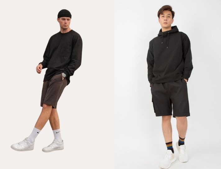 Phối áo nỉ nam với quần short