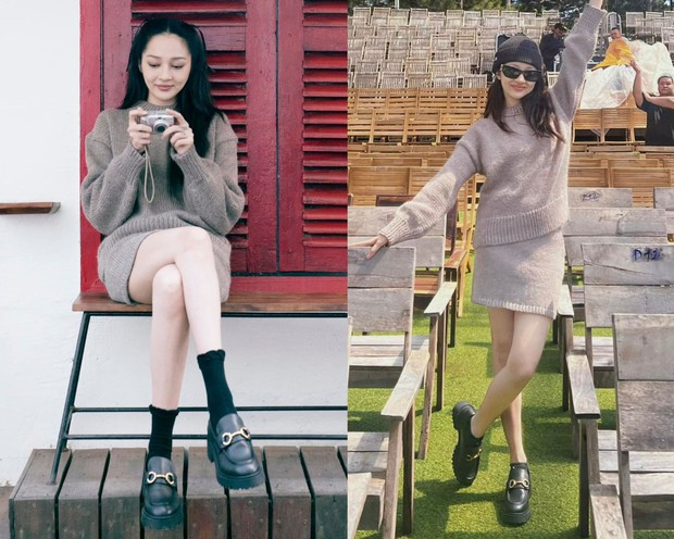 Diện set áo len và chân váy ngắn đồng bộ, diện mạo của Bảo Anh trông trẻ trung hơn so với tuổi. Công thức này còn đem đến hiệu quả tôn dáng cao ráo. Nữ ca sĩ đã nâng tầm bộ trang phục bằng cách đi một đôi loafer mang tông màu đen.