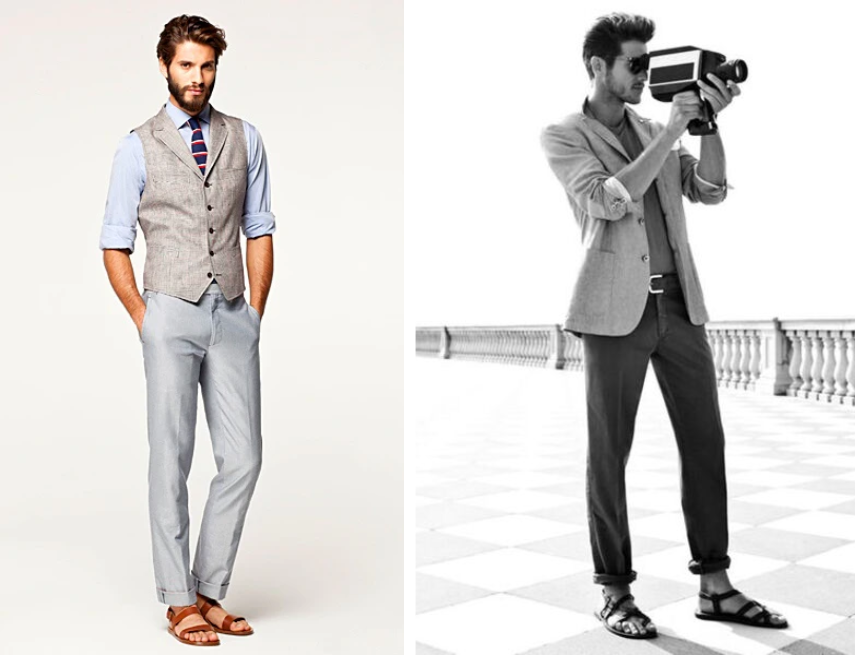 Phối đồ với sandal nam cùng quần vải xắn gấu