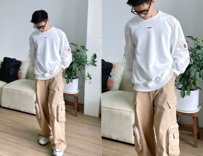 Streetwear là phong cách thời trang hướng tới sự phá cách và độc đáo, những chàng trai theo đuổi phong cách này thường có tủ đồ khá đa dạng với nhiều item cá tính. Quần kaki ống rộng thường được phối với một vài mẫu áo như tanktop, áo thun, denim rách hoặc phối nhiều layer với màu sắc nổi bật.