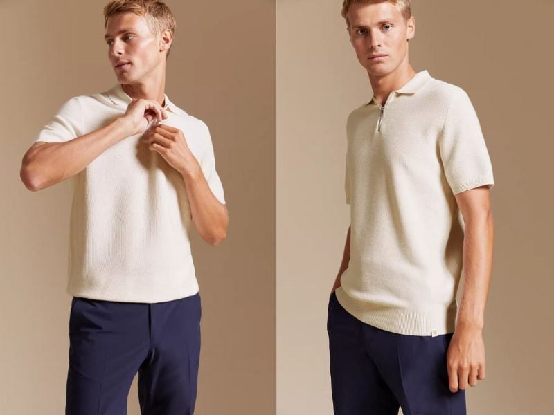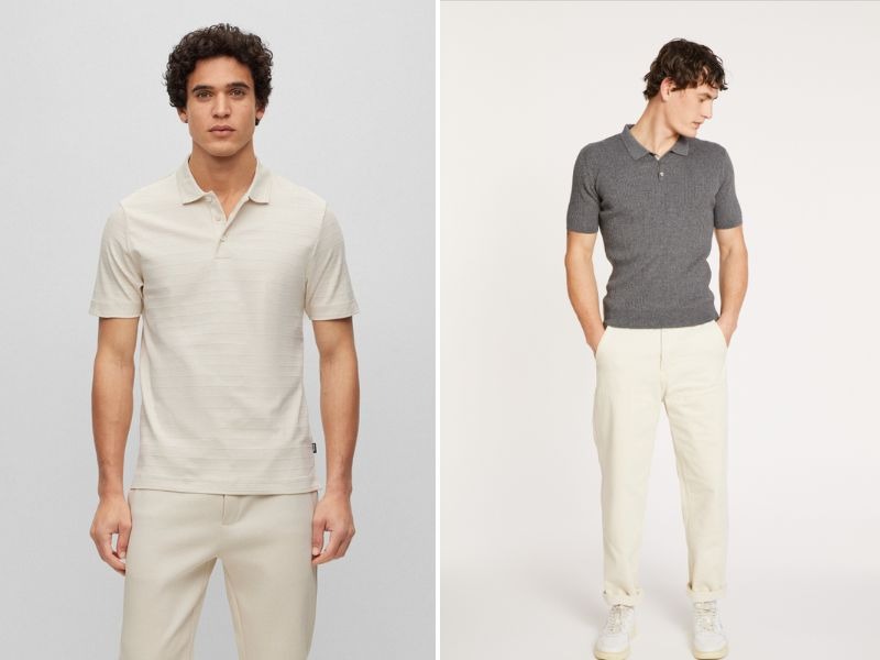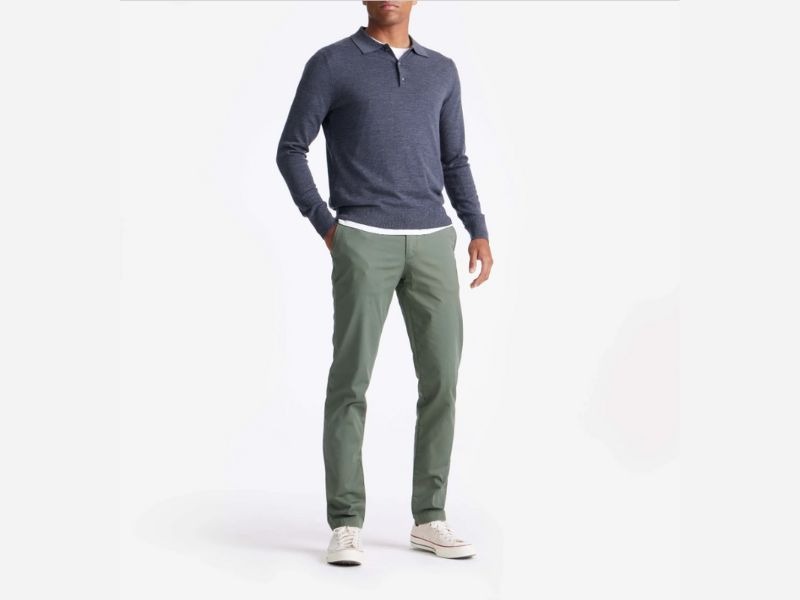 Áo polo len nam và quần chinos hiện đại