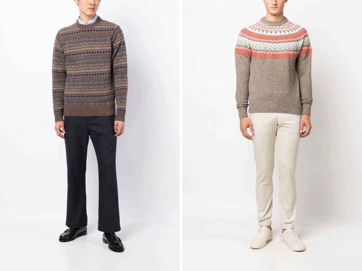 Áo len Fair Isle là item với họa tiết từ hòn đảo Fair Isle của Scotland, nơi nó được đan lần đầu tiên. Ban đầu, chúng được dệt bằng những màu sắc và câu chuyện về di sản của một thị tộc, nhưng ngày nay nó mang tính trang trí nhiều hơn và nhẹ hơn so với kiểu truyền thống.