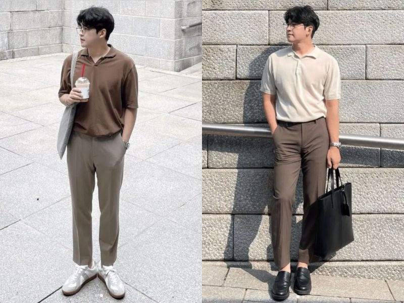 Áo len ngắn tay và quần tây lịch lãm
