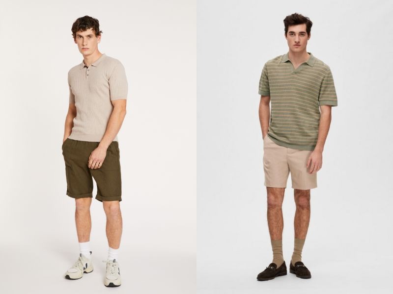 Một trong những cách phối áo len nam tay ngắn đơn giản mà bạn nên thử đó là kết hợp quần short. Phong cách này được khá nhiều anh chàng lựa chọn cho mùa hè bởi chúng mang lại cảm giác thoải mái mà không bị gò bó.