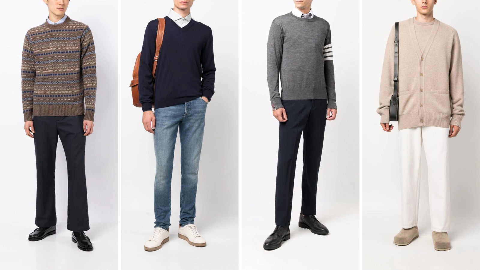 Nếu bạn theo đuổi phong cách lịch thiệp hay là một chàng trai văn phòng thường xuyên phải đi họp hay gặp mặt khách hàng và đối tác. Vậy thì nên tham khảo cách phối áo len nam với quần tây nhé!