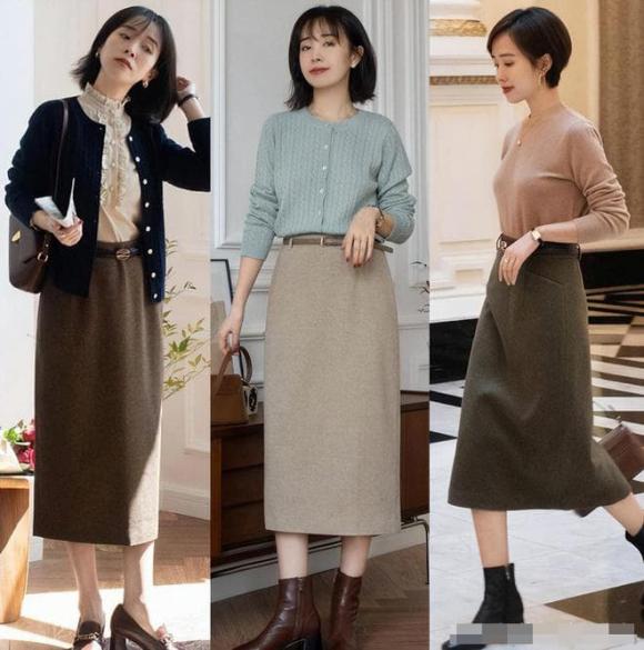 Hãy nói về cách kết hợp váy thời trang, chẳng hạn như sự kết hợp giữa áo len và váy dài, một chiếc áo len dày kết hợp với một chiếc váy dài vừa phải nhẹ nhàng và linh hoạt không kém.