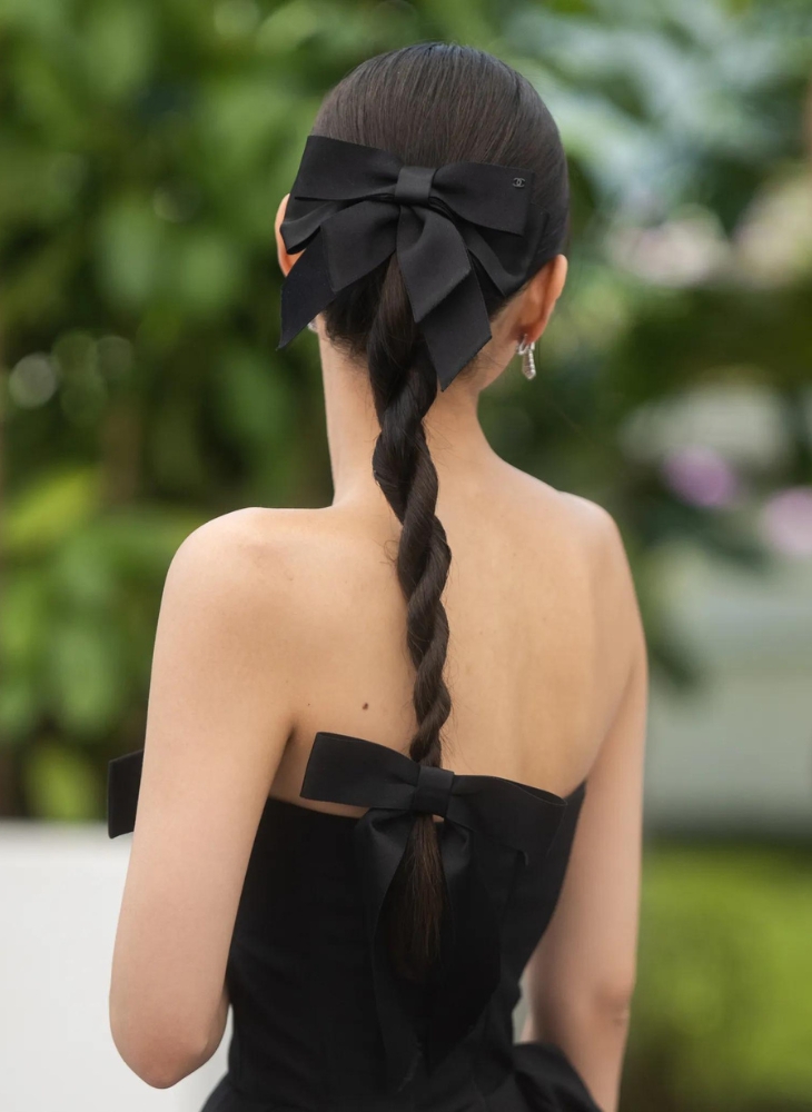 Kiểu búi tóc thấp bóng mượt là lựa chọn lý tưởng cho những ai yêu thích vẻ ngoài tinh tế và thanh lịch của xu hướng Quiet Luxury. Phần tóc được kéo gọn về sau gáy và xoắn lại trước khi trang trí cùng một chiếc kẹp tóc hay dây ruy băng.